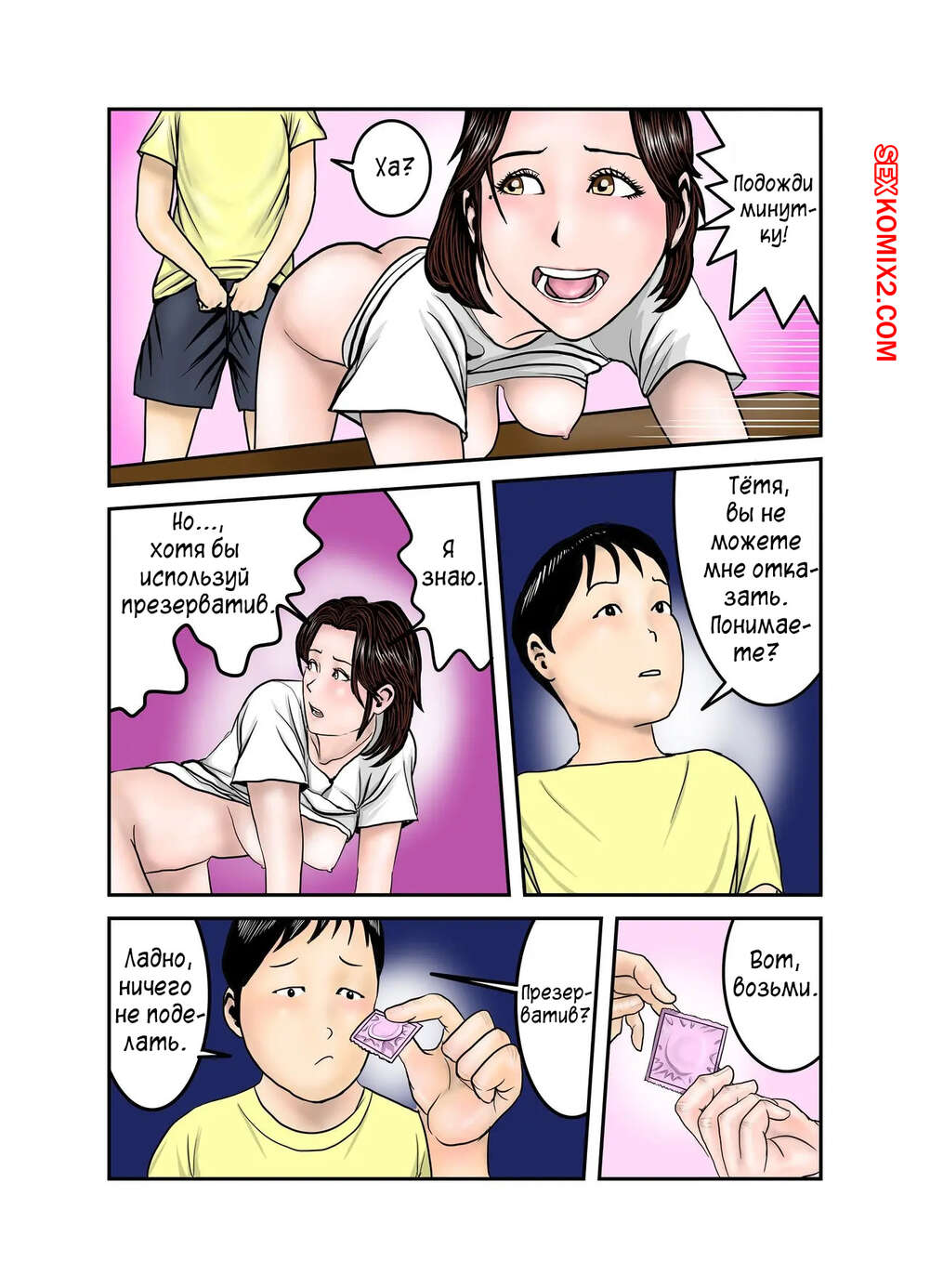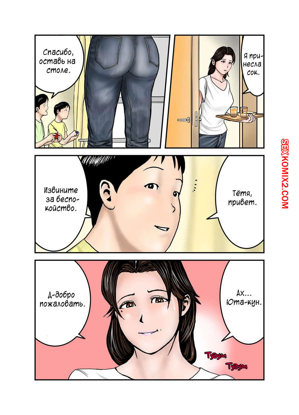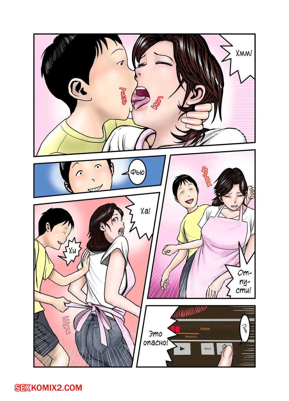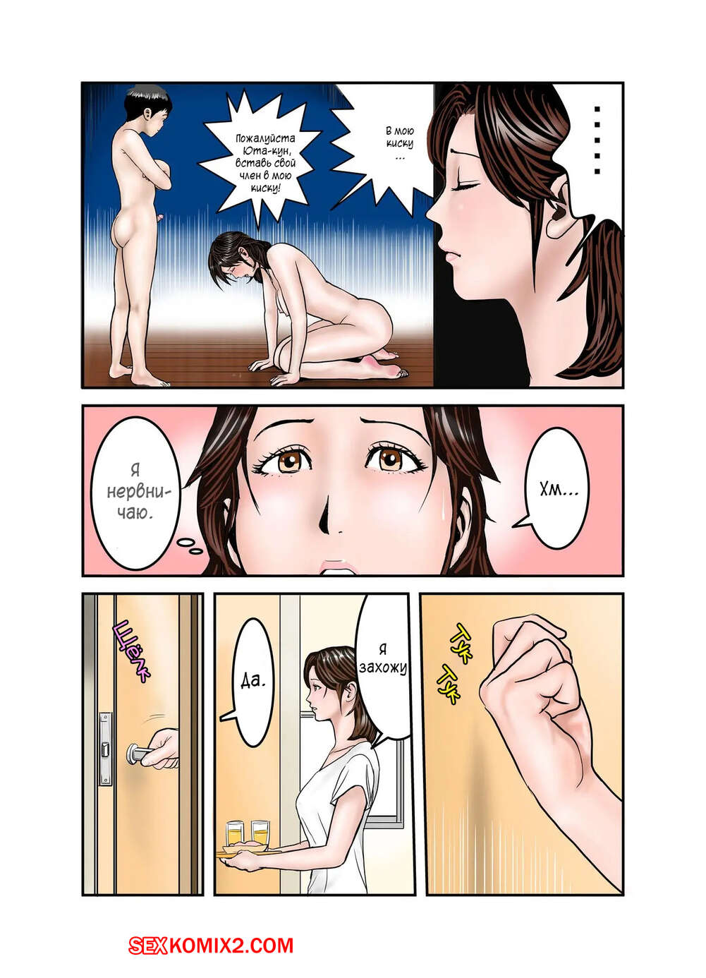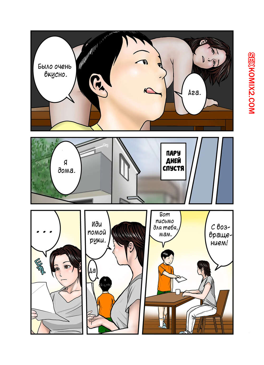 Порно комикс Мама Хиро куна моя секс рабыня. Часть 2. Exit Up Молодой парнишка продолжает пользоваться тем, что знает сокровенную тайну мамки своего друга. Красотка раздевается и сосет большой хуй парня, после чего он ее хорошенько трахает.
