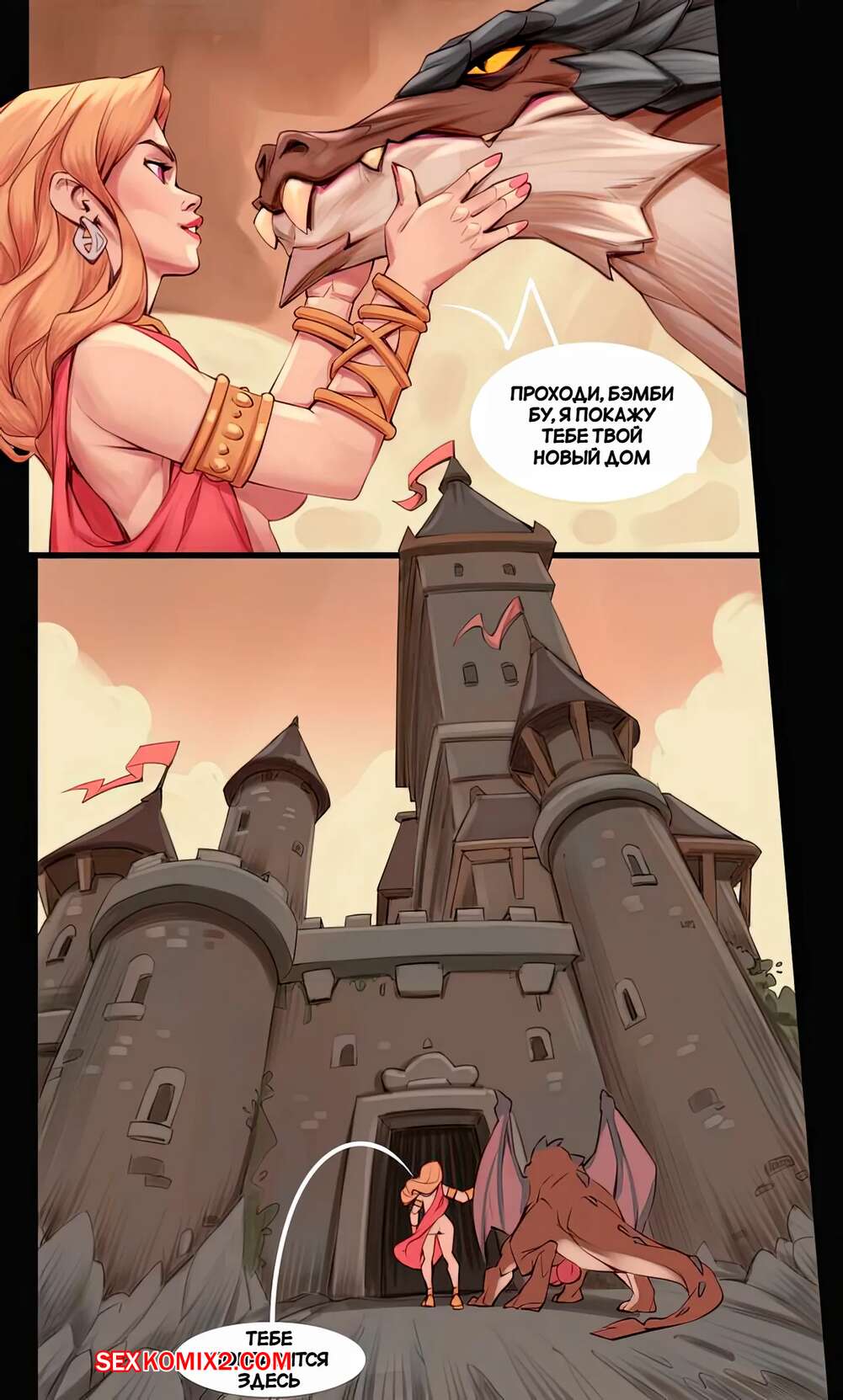 Порно комикс Проклятие дракона. Dragons Curse. Rino99 Горячая брюнетка с большим хуем была очень возбуждена и решила повеселиться с сексуальной блондинкой. Она раздела ее и дала ей отсосать свой большой хуй, после чего выебала задницу девушки.