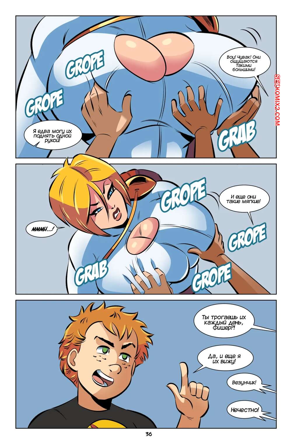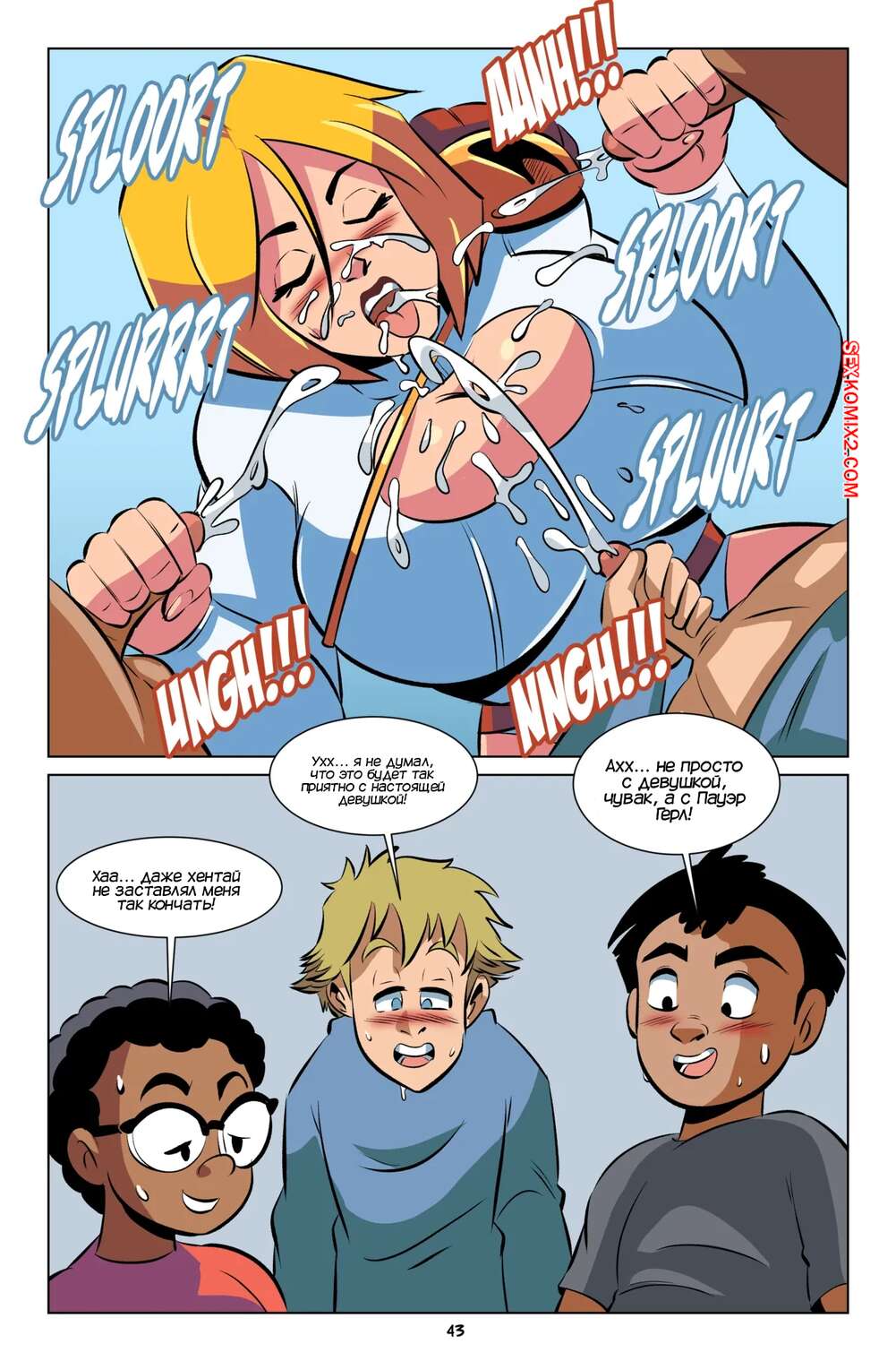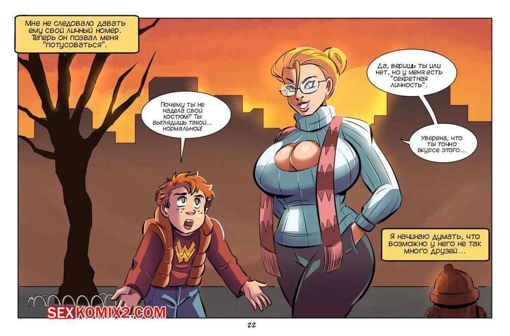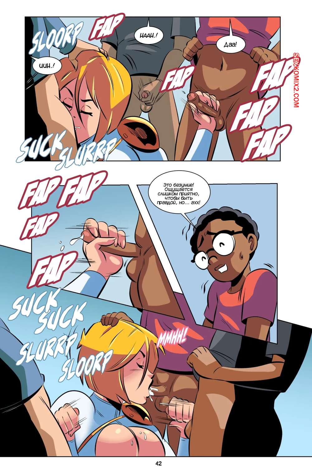 Порно комикс DC. Силовая игра. Power Play. glassfish Горячая блондинка милфа была очень возбуждена и решила повеселиться со своим сыном. Красотка встала на колени перед парнем и отсосала его большой хуй, после чего он кончил ей в ротик.
