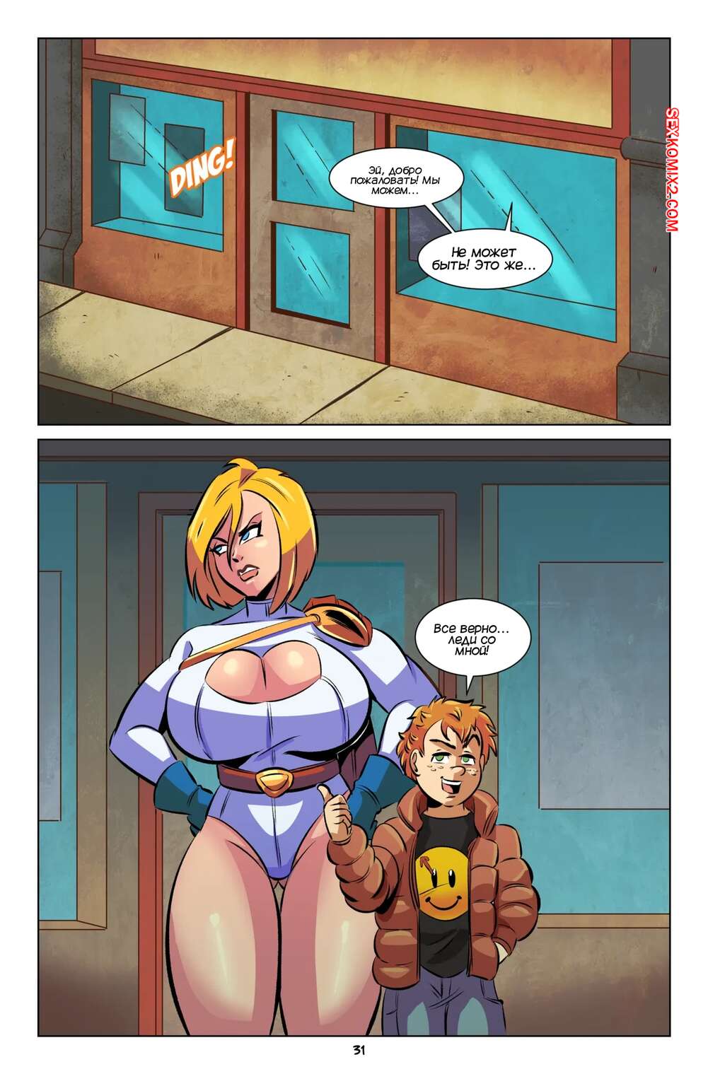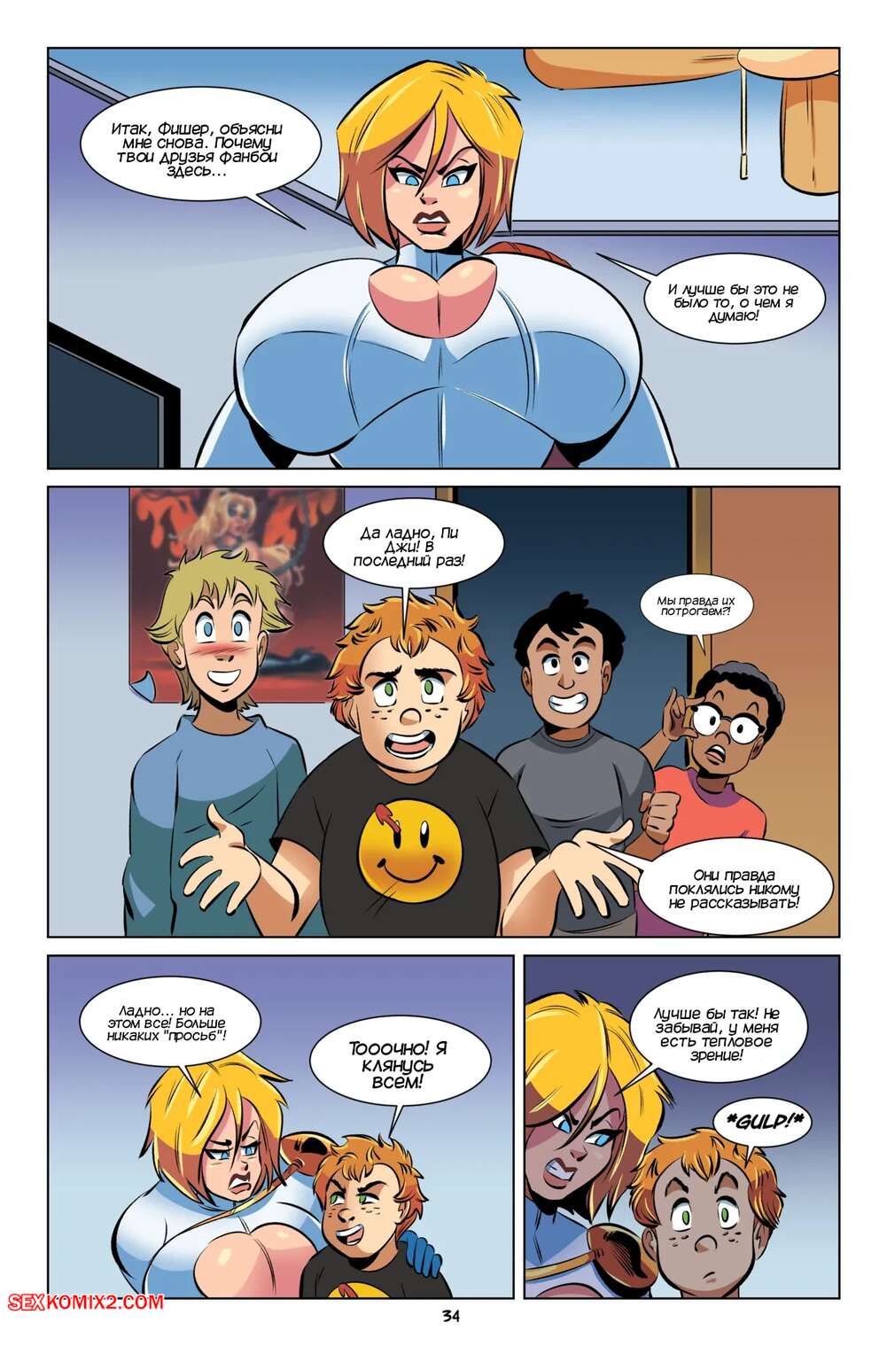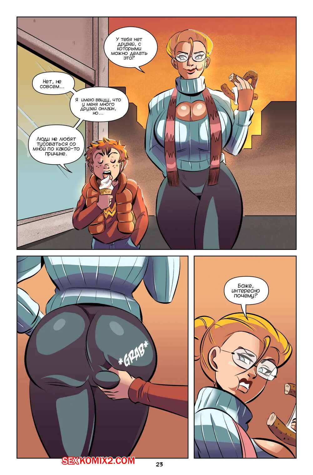 Порно комикс DC. Силовая игра. Power Play. glassfish Горячая блондинка милфа была очень возбуждена и решила повеселиться со своим сыном. Красотка встала на колени перед парнем и отсосала его большой хуй, после чего он кончил ей в ротик.