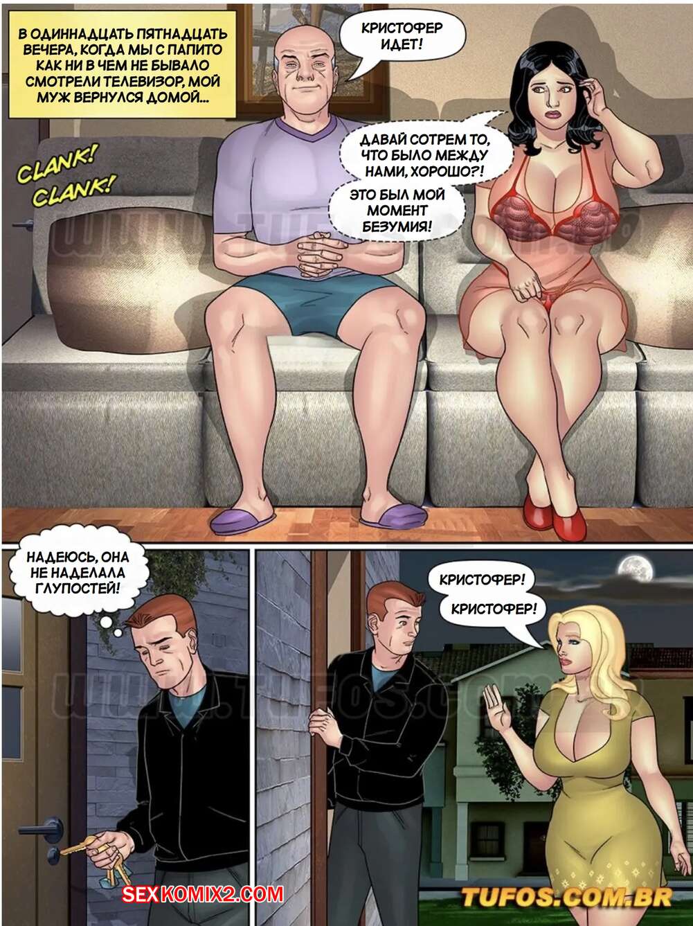 Порно комикс Папочка. Тесть извращенец. Часть 11. Tufos Крис вернулся домой и Клариса потащила его в свою спальню, чтобы заняться сексом. Тем временем Элиза уединилась со стариком и дала ему себя выебать во все дырочки, от чего получила огромное удовольствие.