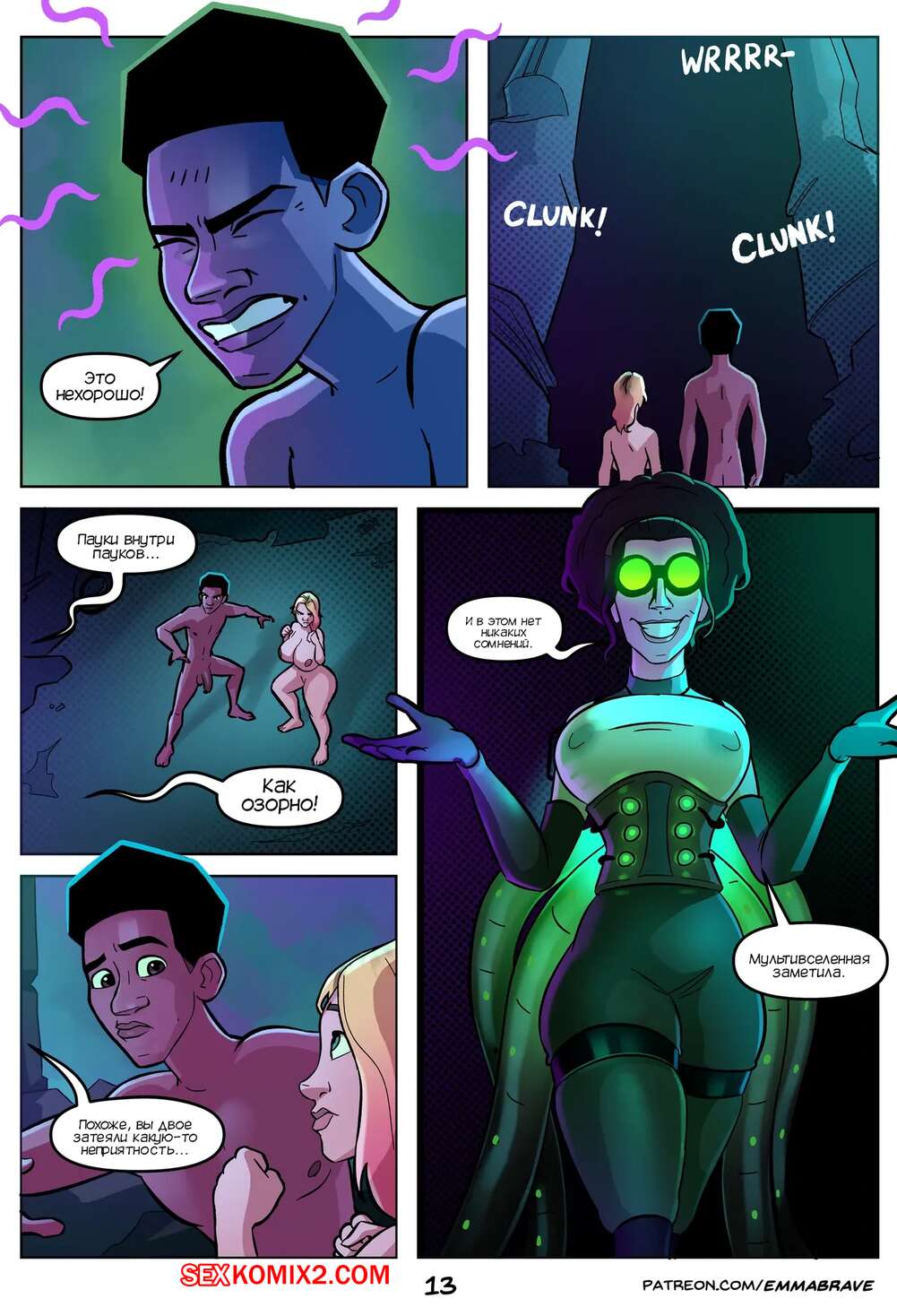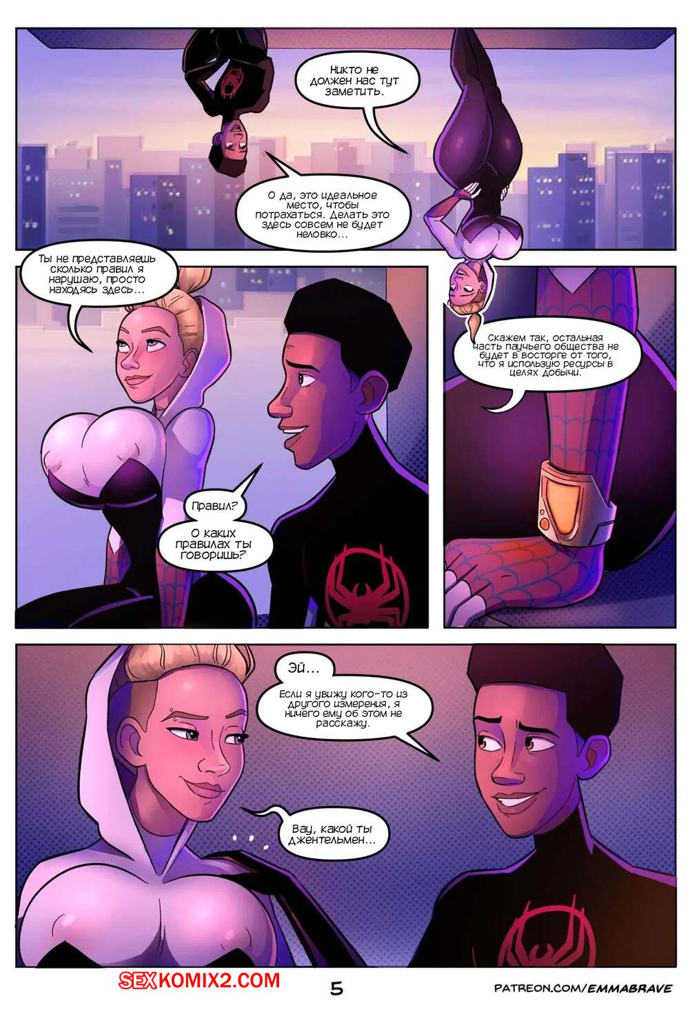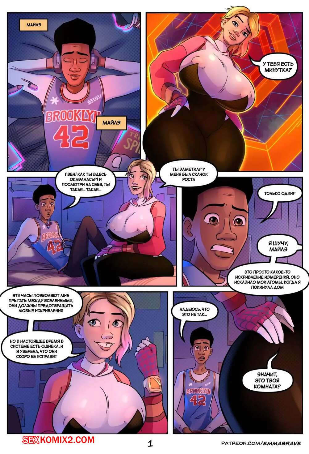 Порно комикс Гвен. Спайдерверс 18. Spiderverse 18. EmmaBrave. Гвен появляется в комнате Майлза через портал. Девушка застала его за мастурбацией. Девушка-паук помогла парню кончить.