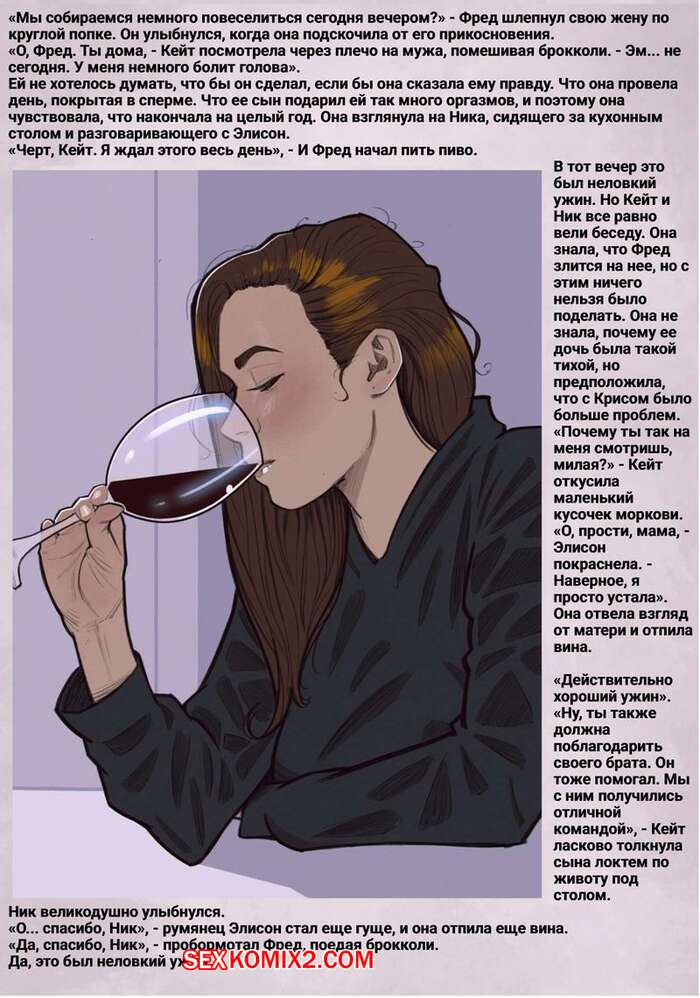 Порно комикс Головоломка. Часть 12. rawlyrawls Горячая милфа выпила вина и решила повеселиться со своим сыном. Девушка разделась и отсосала большой хуй парня, доставив ему невероятное удовольствие и оргазм.