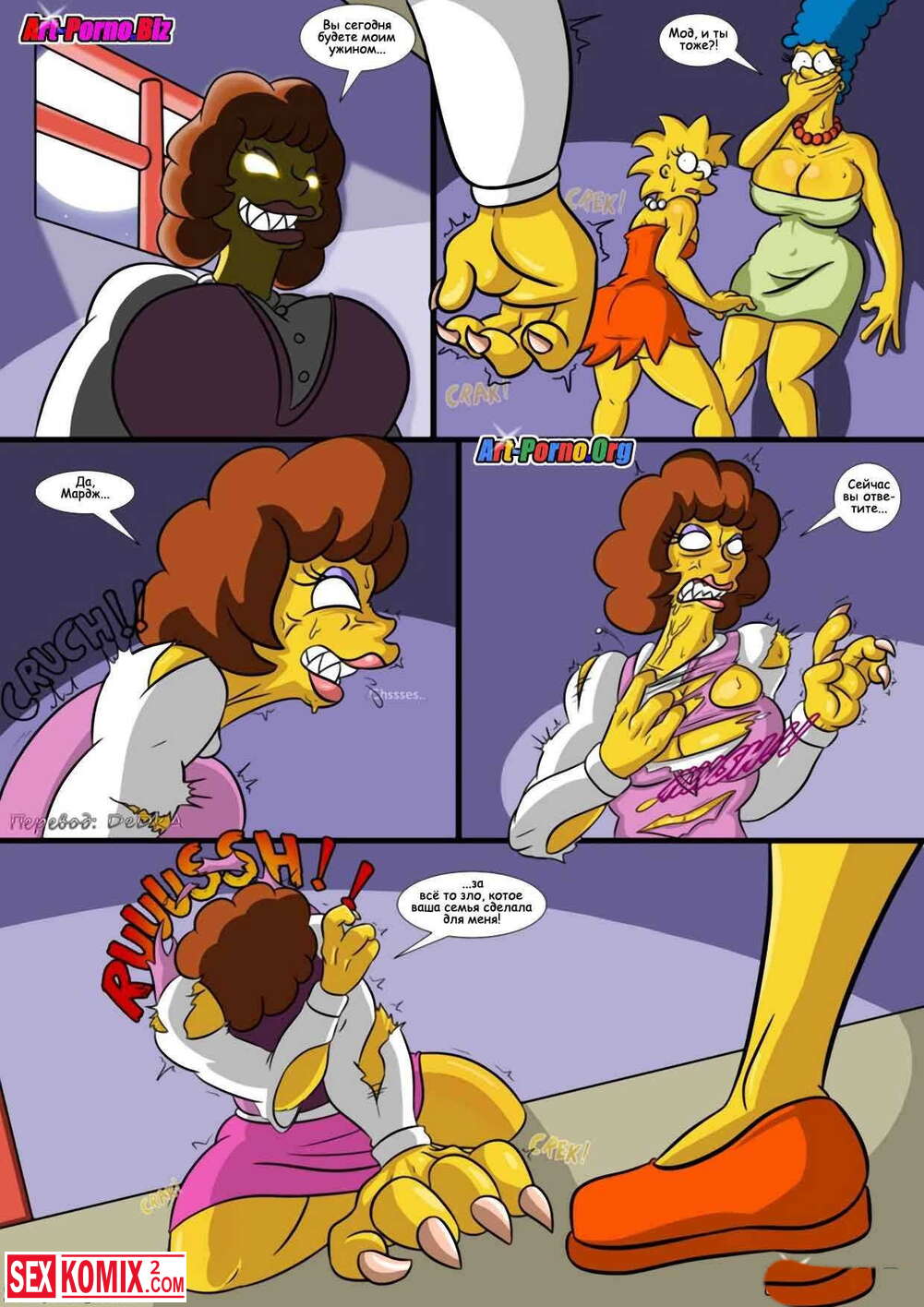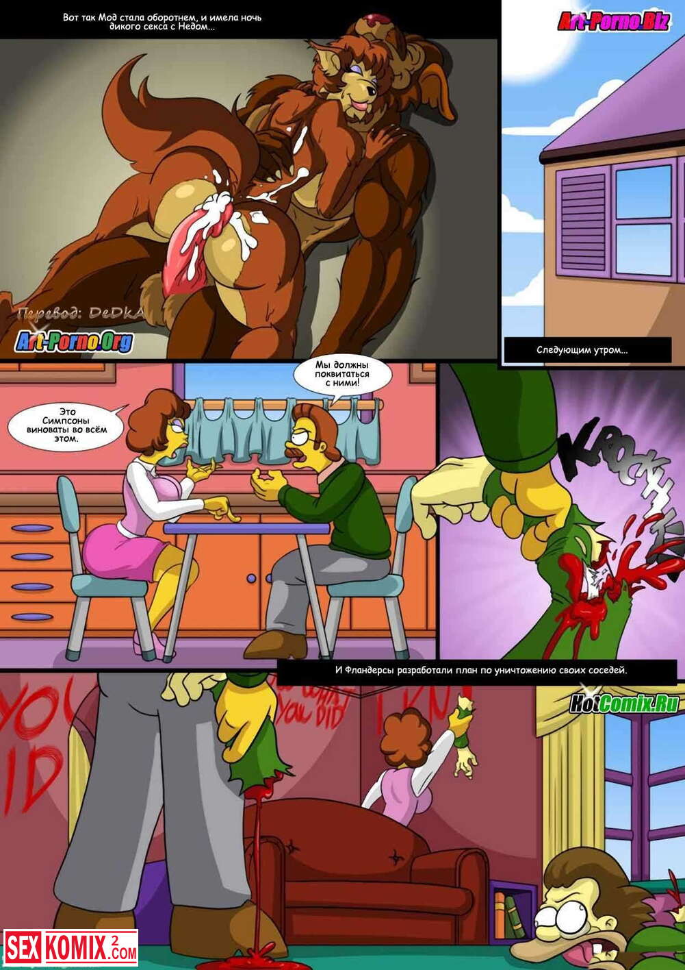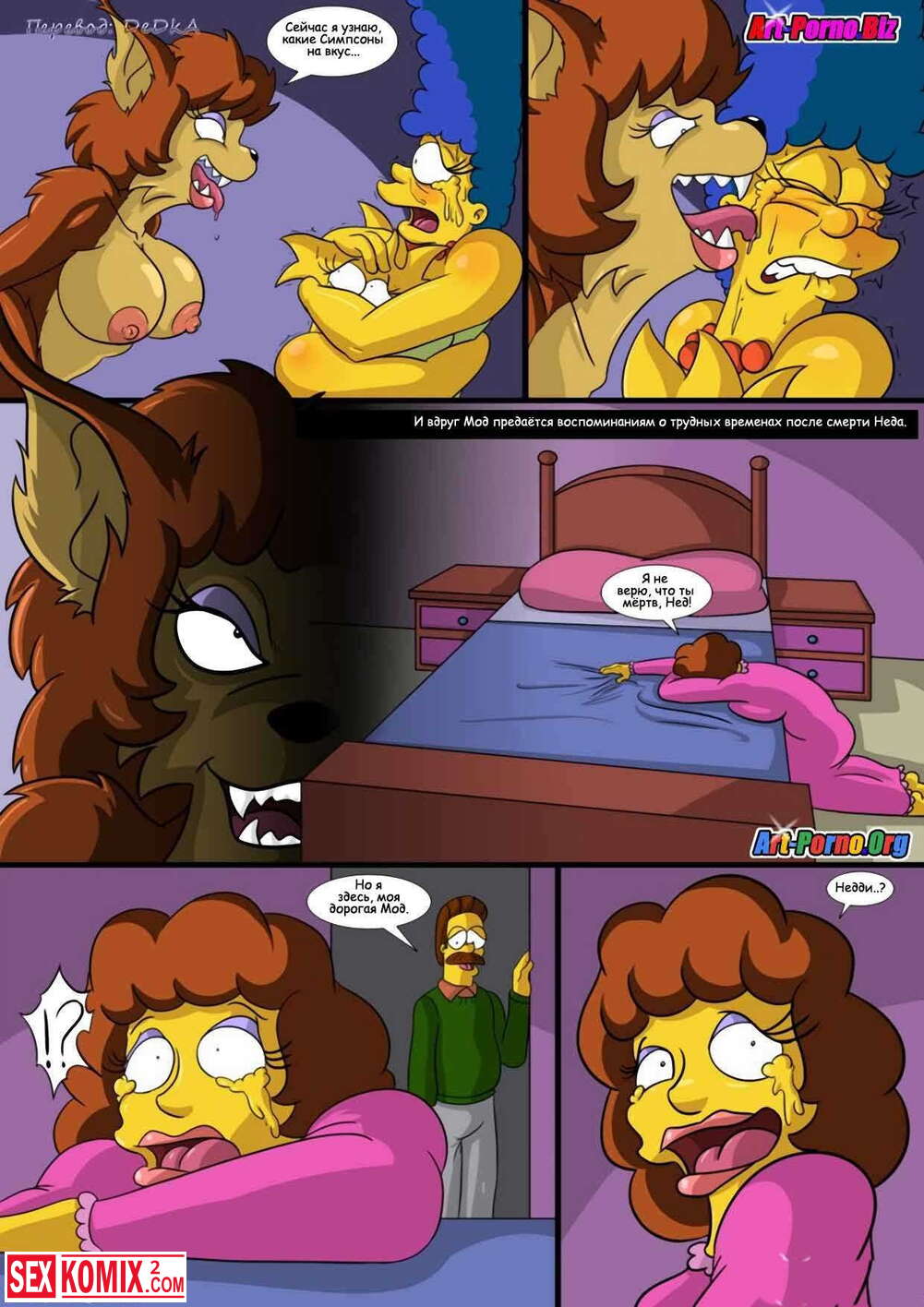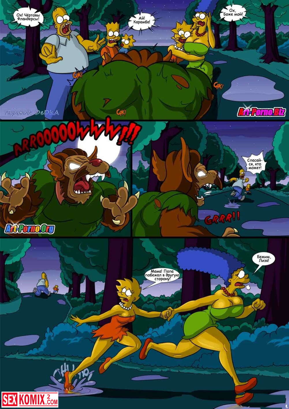Порно комикс Симпсоны. Домик на дереве ужасов. Часть 2. На семью Симпсонов напал оборотень, они скрылись у школьной учительницы. Но она тоже оказалась оборотнем.