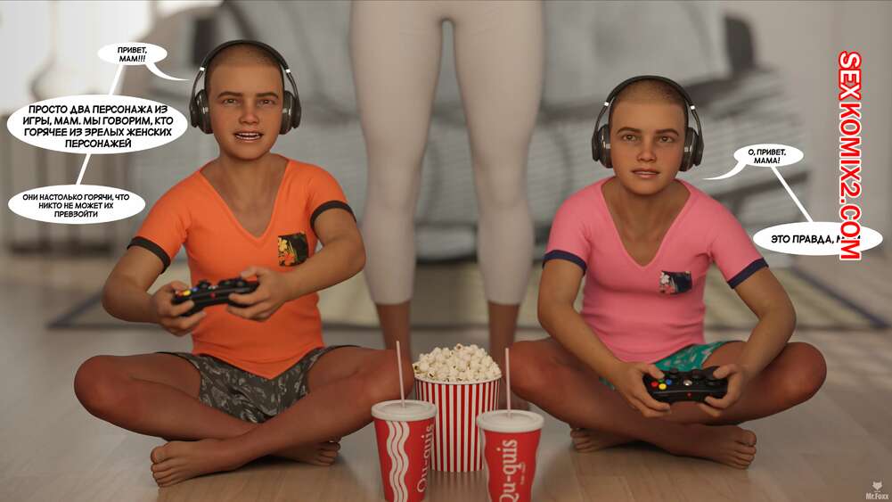 Порно комикс Красота реальности. The Beauty of Reality. Mr.Foxx Горячая брюнетка милфа осталась дома наедине со своими сыновьями и решила повеселиться. Она пригласила их в свою комнату, где встретила их полностью голыми.