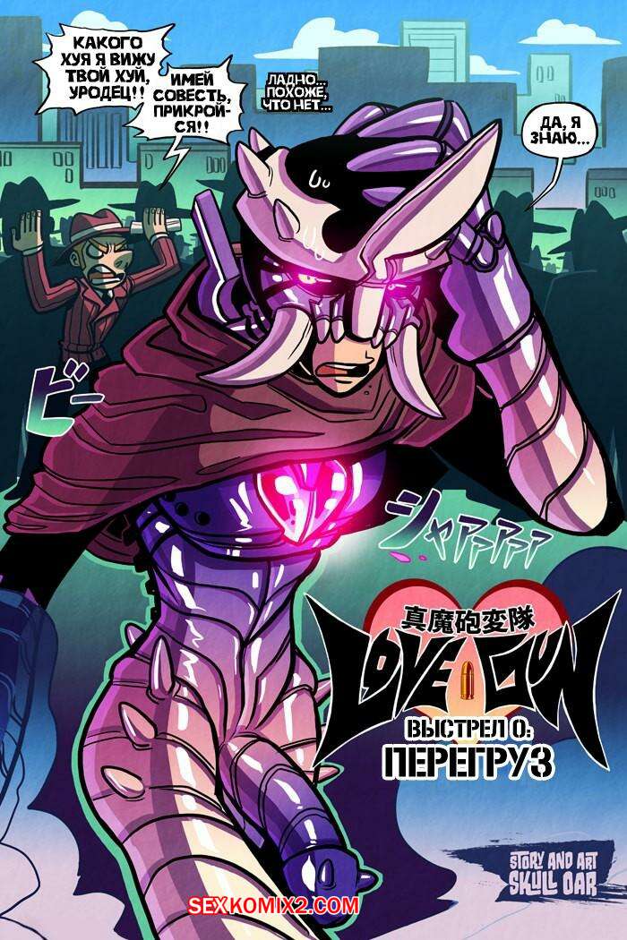 Порно комикс Love gun. Skull Oar На сисястую брюнетку напал парень инопланетянин с огромным членом. Он раздел девушку и лишил ее возможности двигаться, после чего хорошенько выебал ее пизденку.
