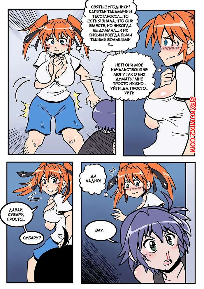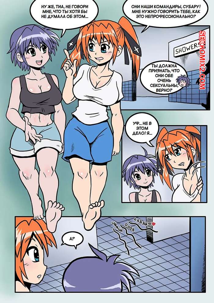 Порно комикс Субару и Тиана. Subaru X Teana Девушки спалили подруг в душе и сильно возбудились. Красотки разделись и стали ласкать друг дружку, после чего занялись страстной лесбийской еблей, получив удовольствие.