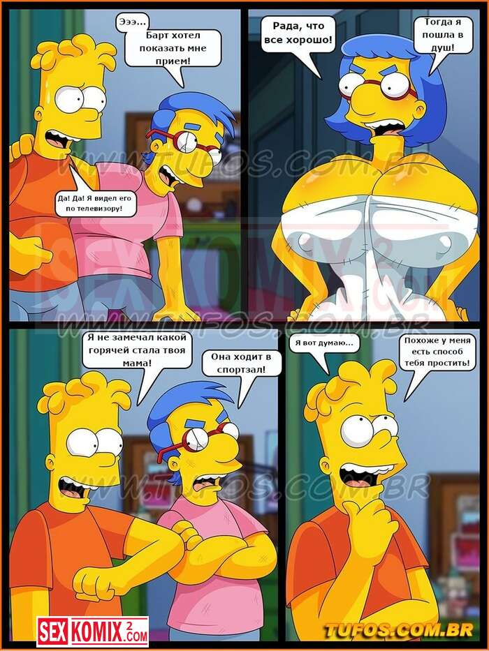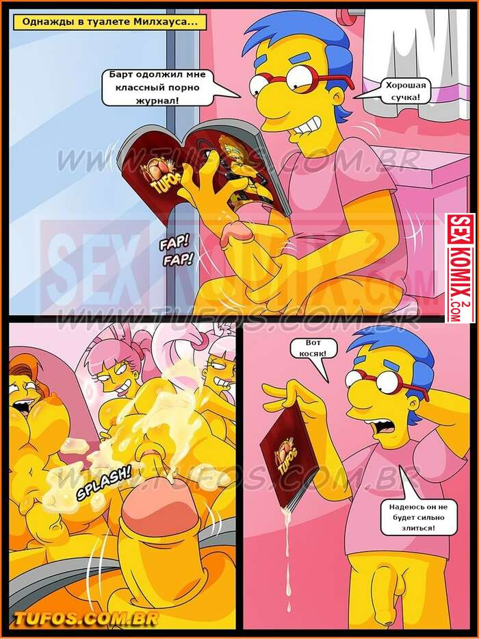 Порно комиксы Симпсоны. Часть 27. Коллекция порно журналов. Минхауз одолжил у Барта порно журнал и залил его спермой. Барт был очень недоволен этим и в замен захотел трахнуть горячую мать своего друга.