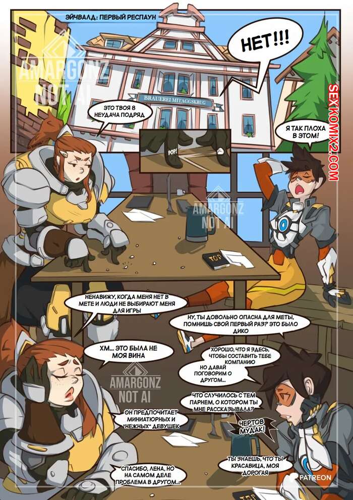 Порно комикс Overwatch. Как хорошая подруга. Like a Good Friend. Amargonz Две подруги сидели в баре и играли. Лена выпила неизвестное зелье, которое оказало влияние на ее тело. У девушки появился член и ее подруга решила помочь ей снять напряжение.