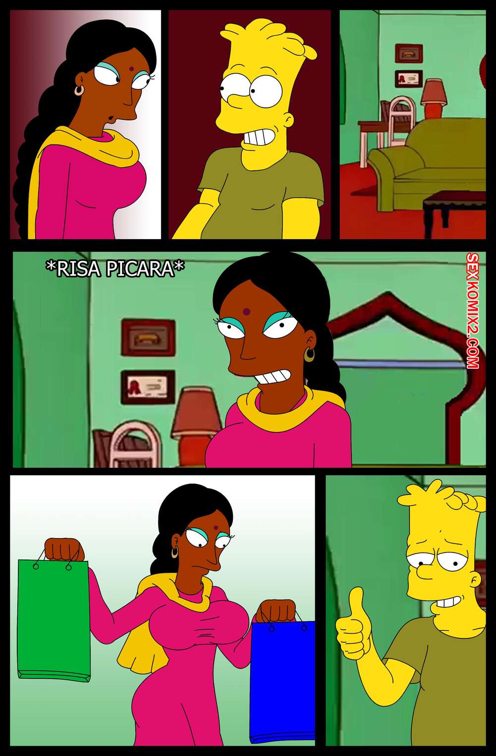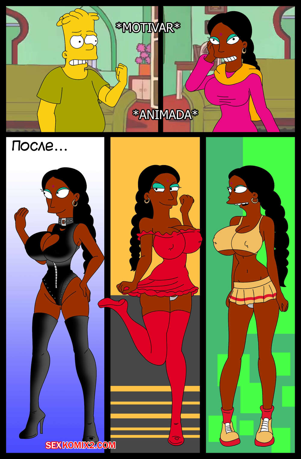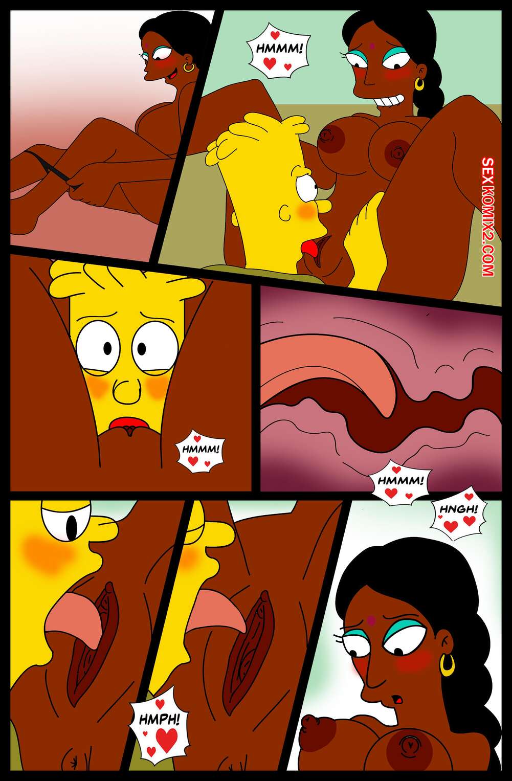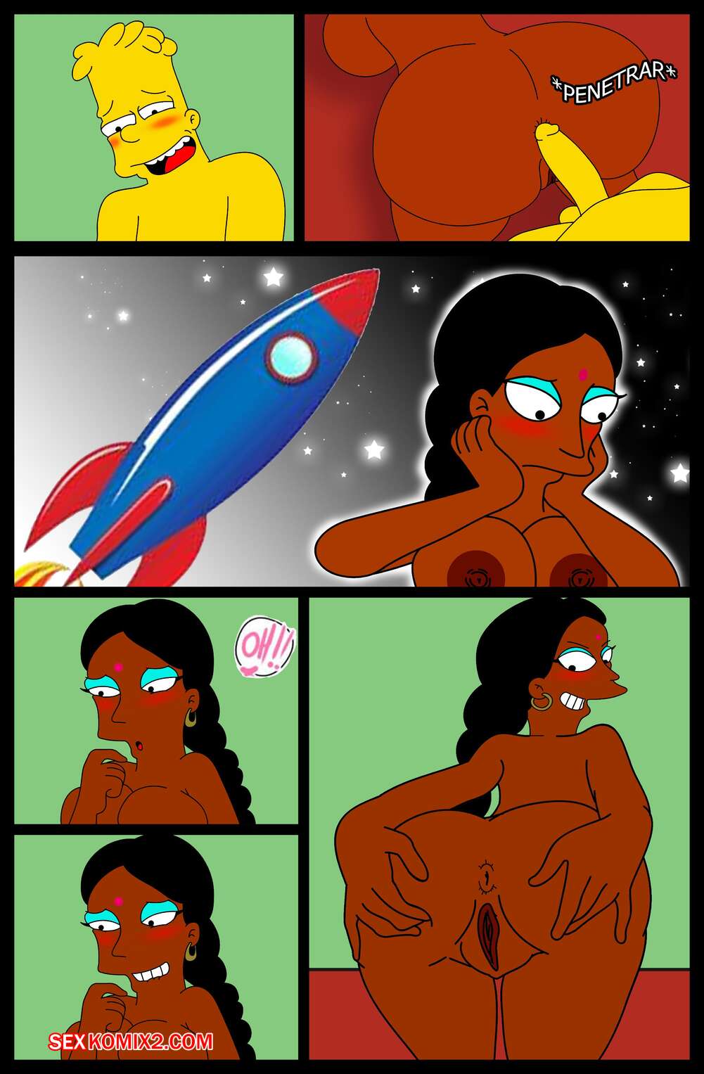 Порно комикс Simpson XXX Bart X Manjula. Ferozyraptor Барт подрабатывал в магазине, где на него положила глаз сексуальная милфа. Она пригласила парня к себе и отсосала его член, после чего дала ему выебать свою пизденку.