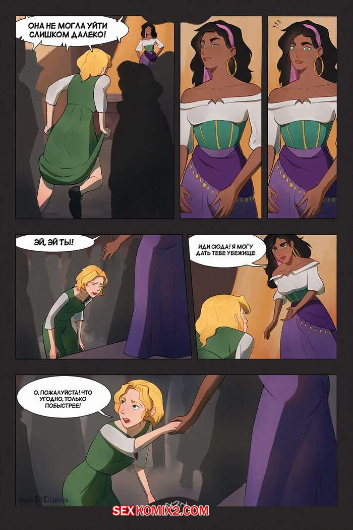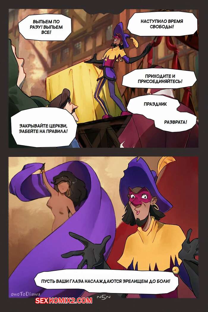 Порно комикс Праздник разврата. Feast of Lewds. OwOToDiUwU. Молодую горячую блондинку заковали в кандалы перед целой площадью и полностью раздели. После этого к девушке сзади подошла Эсмеральда и хорошенько выебала пизденку блондиночки своим большим членом.