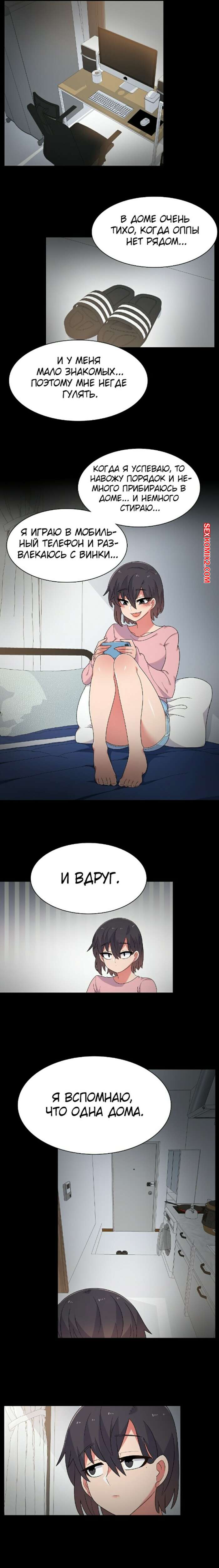 Порно комикс Мина. Часть 4 и 5 и 6 Молодая горячая брюнетка была очень возбуждена и решила повеселиться с парнем. Она разделась и возбудила его шикарным телом, после чего оседлала хуй парня и дала ему себя выебать.