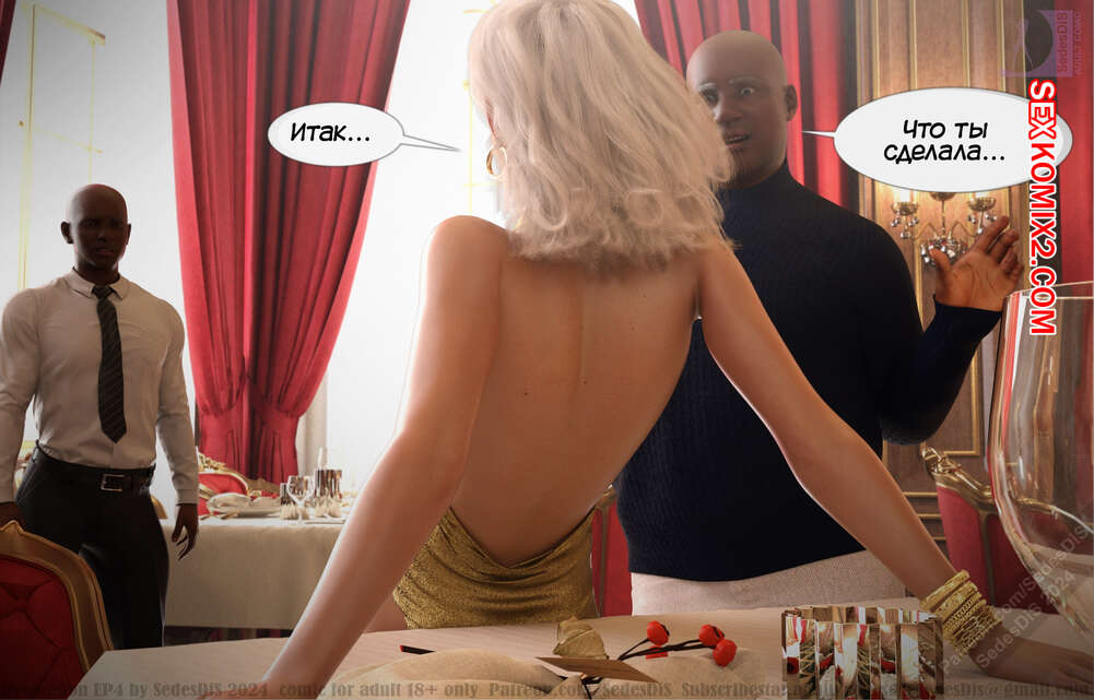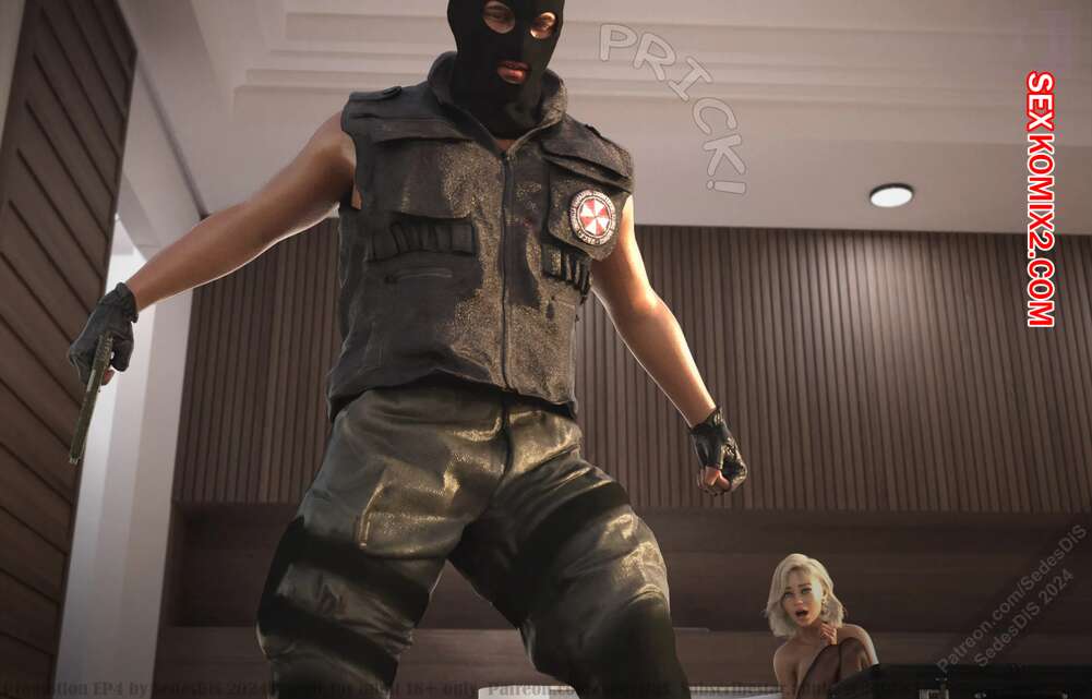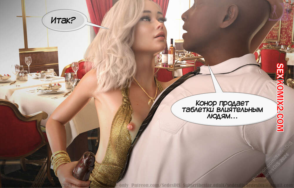 Порно комикс Повышение. Promotion. Часть 4. SedesDiS Парень с девушкой решили отпраздновать успешную сделку. Красотка встала на колени перед своим дружком и стала сосать его огромный хуй, но их прервал бандит в маске..