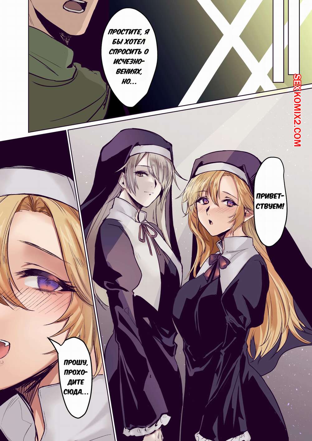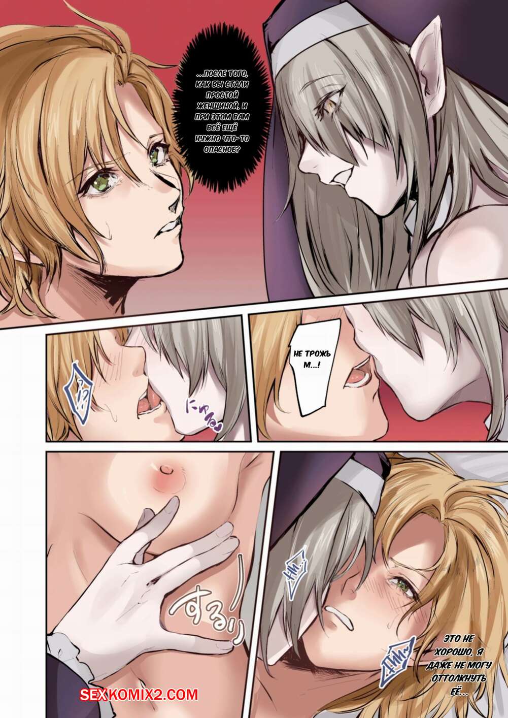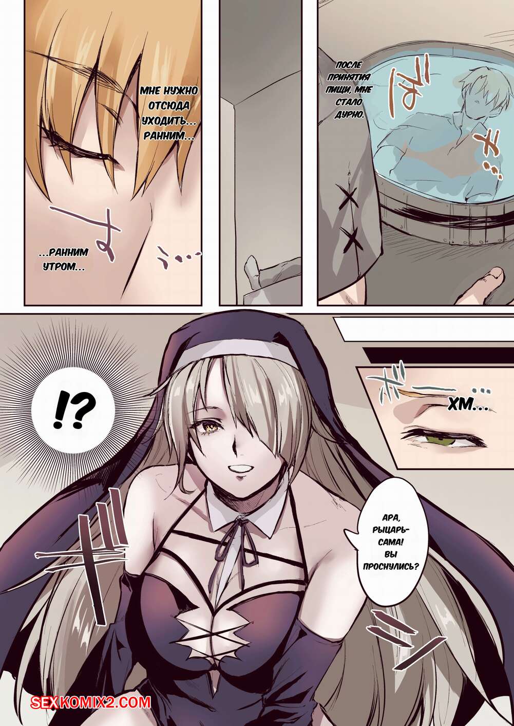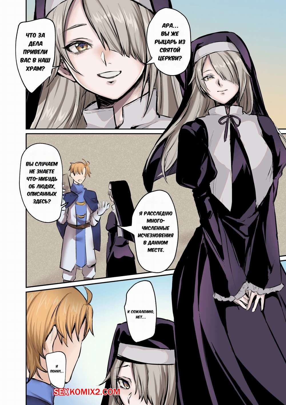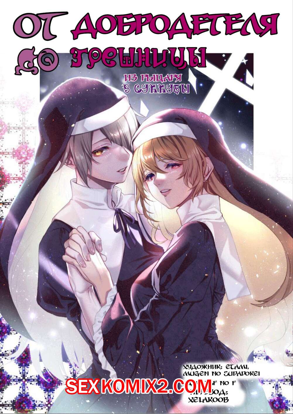 Порно комикс От благодетеля в грешницы. Из рыцаря в суккубы. Mugen No Sudadokei Рыцарь встретил сексуальную монашку и поддался ее соблазнам. Красотка встала на колени и стала сосать большой хуй парня, в результате чего он сам стал девушкой.