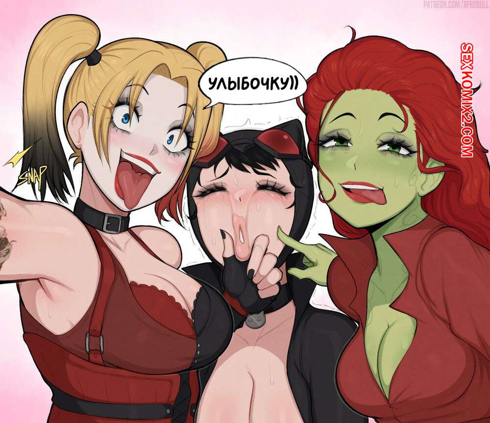 Порно комикс DC Comics. Харли и Женщина Кошка. Afrobull Харли и Айви схватили Женщину кошку, желая с ней повеселиться. Они раздели девушку и стали ласкать ее дырочки, после чего Айви выебала подругу своим большим хуем.