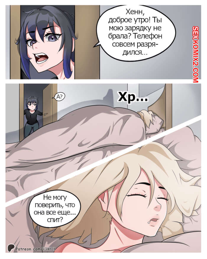 Порно комикс Сон. The Dream. HornyFex Горячая брюнетка застала свою подругу спящей и возбудилась, увидев ее огромный хуй. Она разделась и оседлала член подруги, получив огромное удовольствие от ебли с ней.
