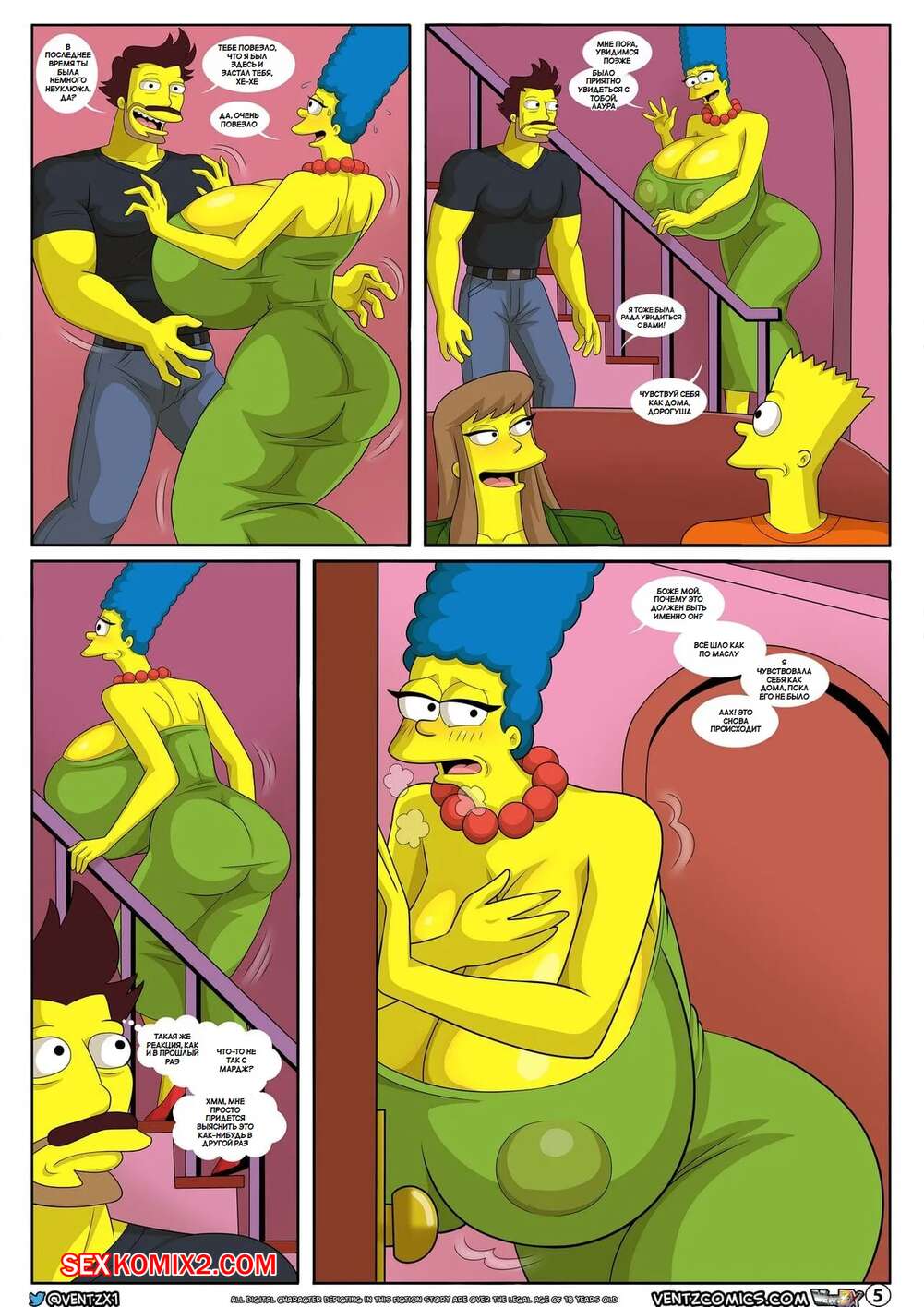 Порно комикс Приключения Даррена. Часть 14. Симпсоны. Darrens Adventure. The Simpsons. Arabatos Лора пришла к Барту и позвала его пообщаться на диване. Тем временем Мардж пошла принять душ и стала ласкать свою пизденку, вспоминая как Даррен ее трахал.