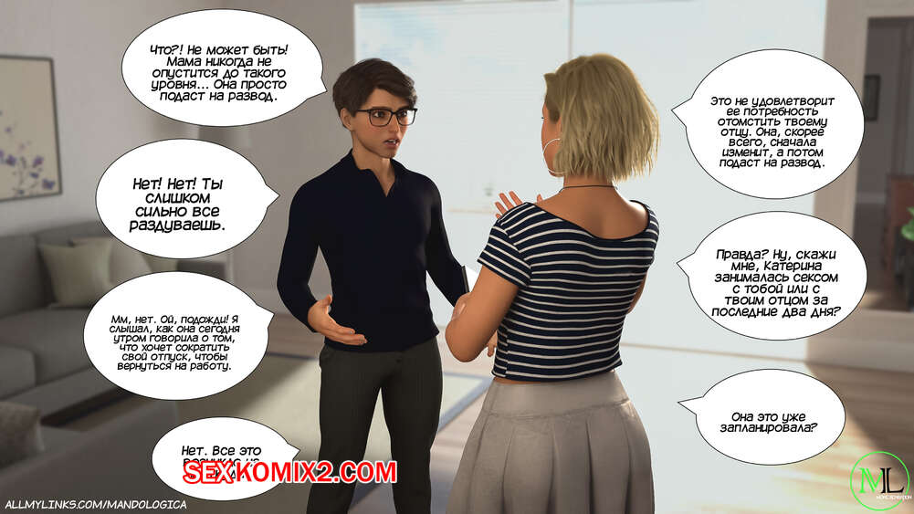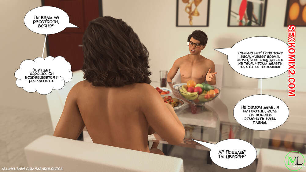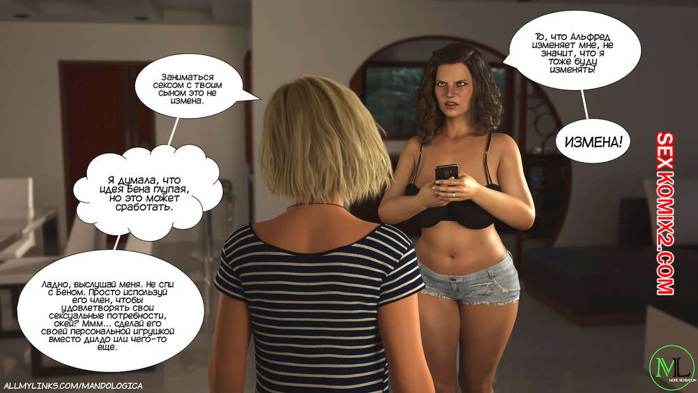 Порно комикс Запретное пламя. Часть 4. Forbidden Flames. MandoLogica Катерина приготовила ужин и они вместе с Беном поели, сидя за столом голые. Парень решил сделать маме рисковое предложение и закинул ей идею, чтобы стать ее секс игрушкой для удовлетворения сексуальных желаний.