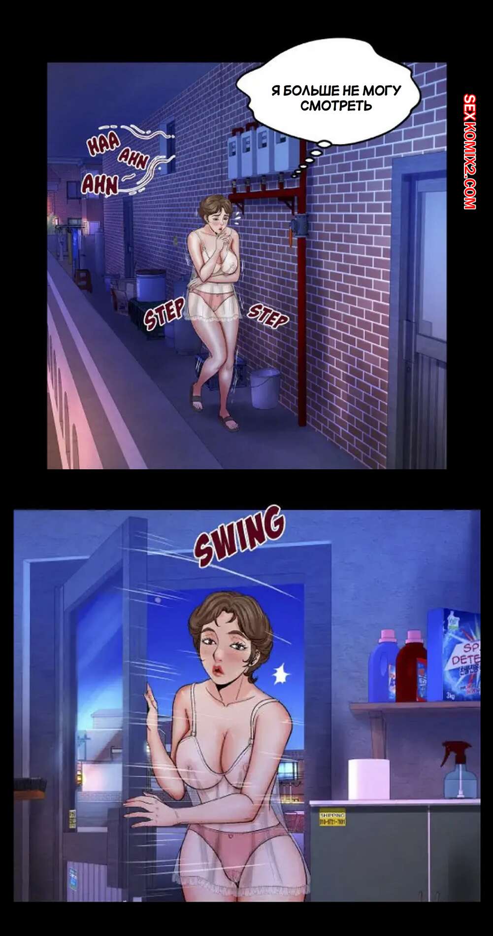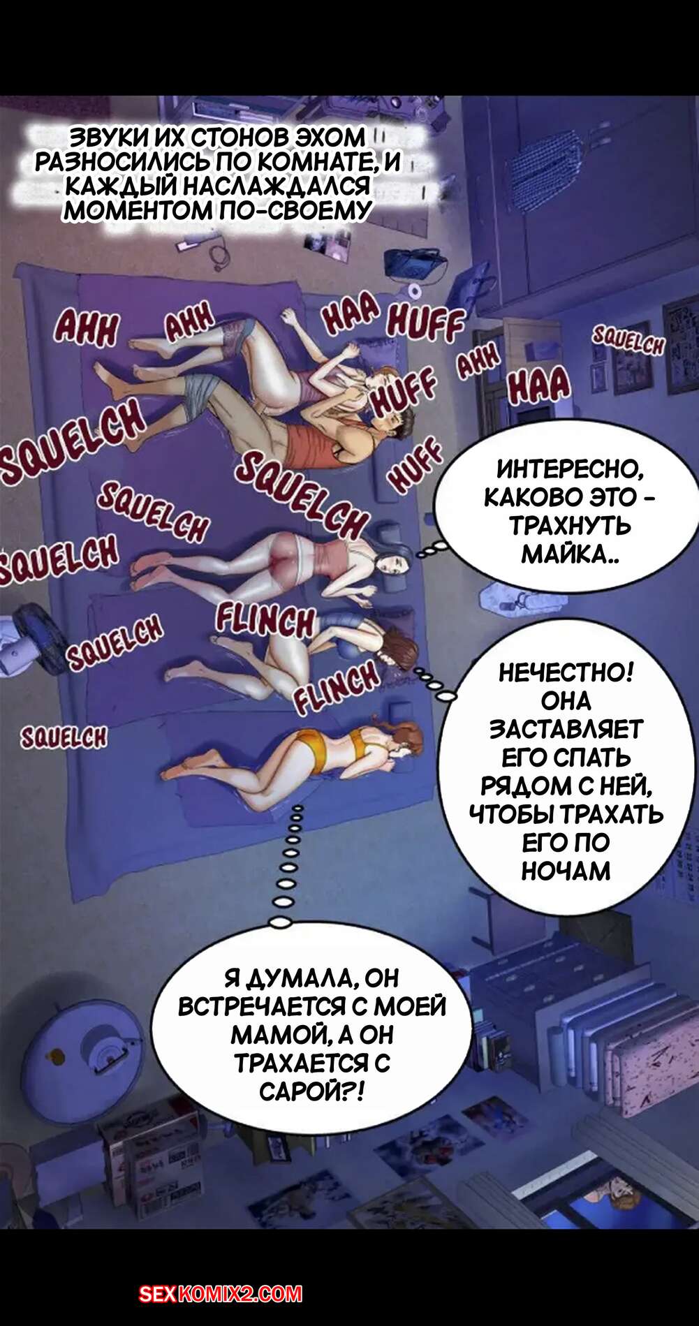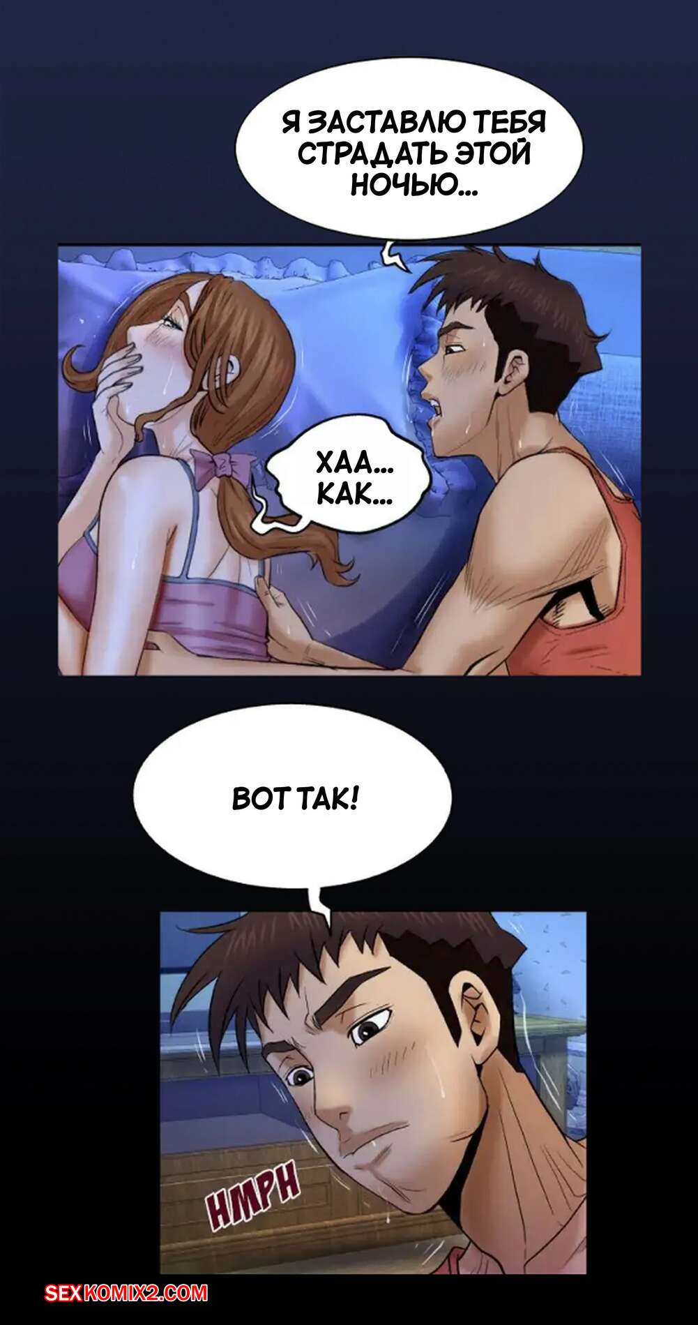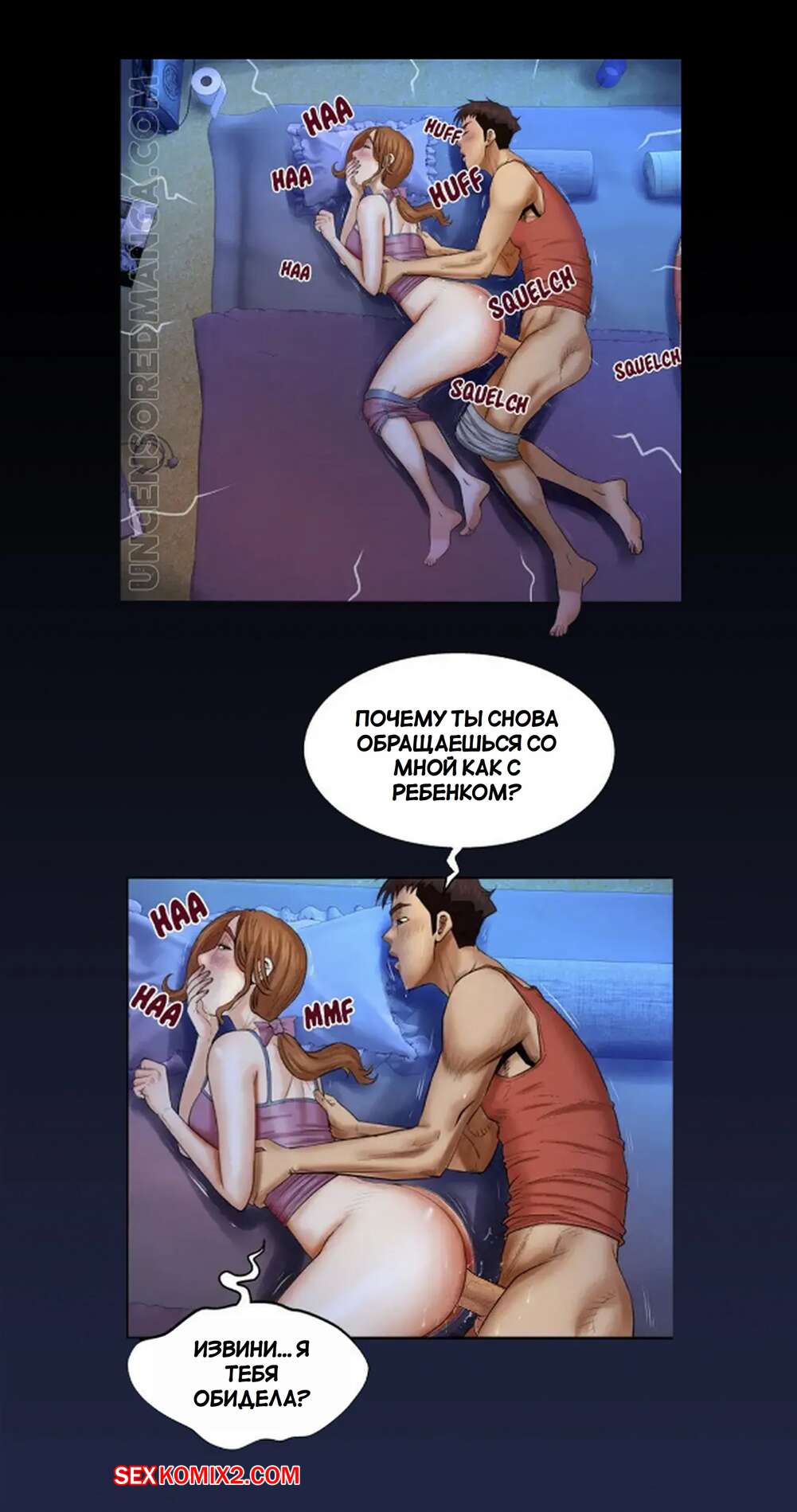 Порно комикс Моя тетя. Без цензуры. Часть 27. My Aunt. Toomics Парень был очень возбужден ночью и решил воспользоваться моментом, что все спать. Он вставил свой большой хуй в пизденку девушки и хорошенько ее выебал, получив удовольствие.