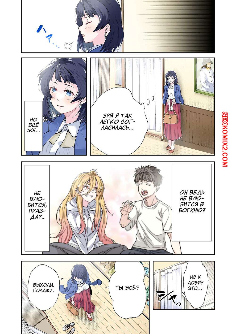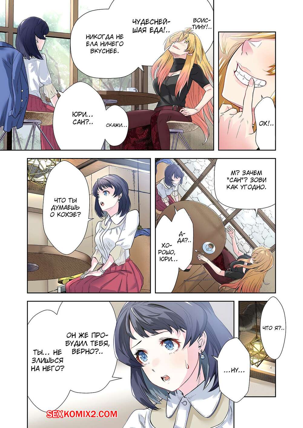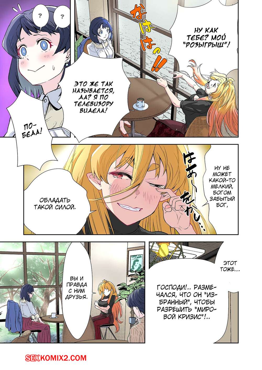Порно комикс Левая рука богини. Отдайся же своей любовнице. Часть 4. MUGENUP Брюнеточка решила сблизиться с девушкой богиней и позвала ее вместе с собой в магазин, чтобы выбрать ей одежду. Девушки прикупили несколько нарядов, после чего отправились в кафе.