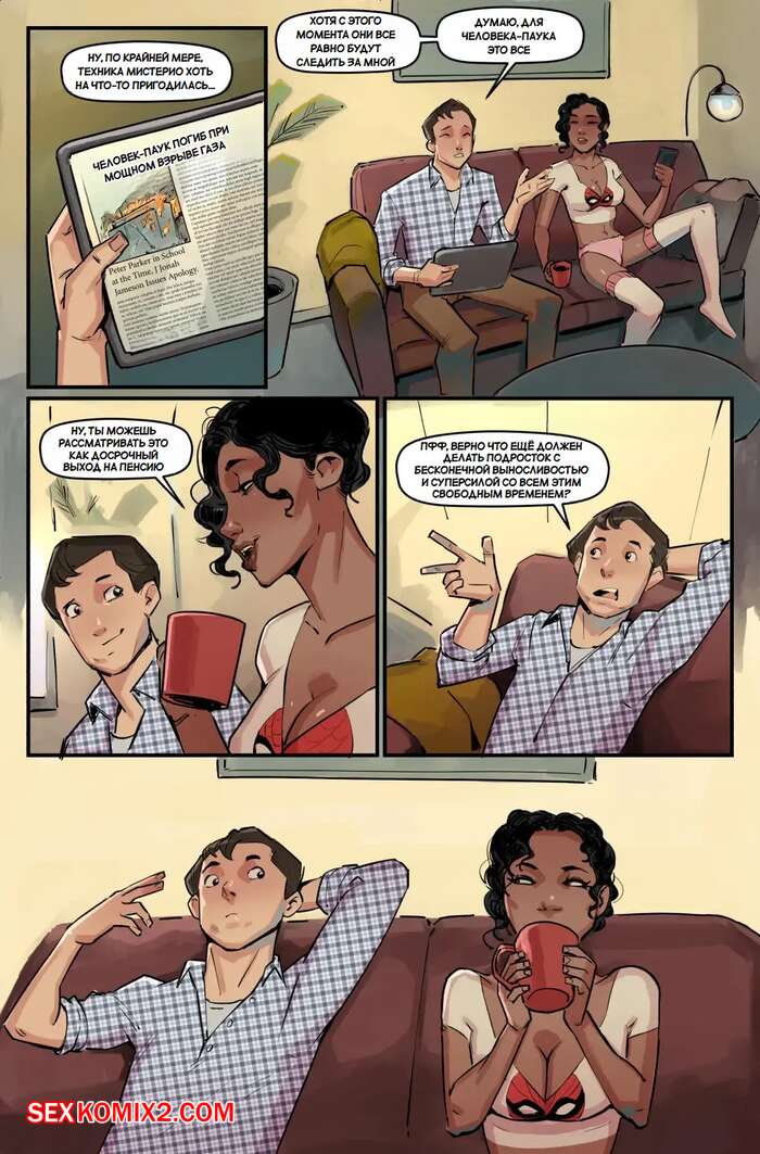 Порно комикс Человек паук. Тетя кончает. Часть 2. Aunt Cummin. Spider Man. Tracy Scops