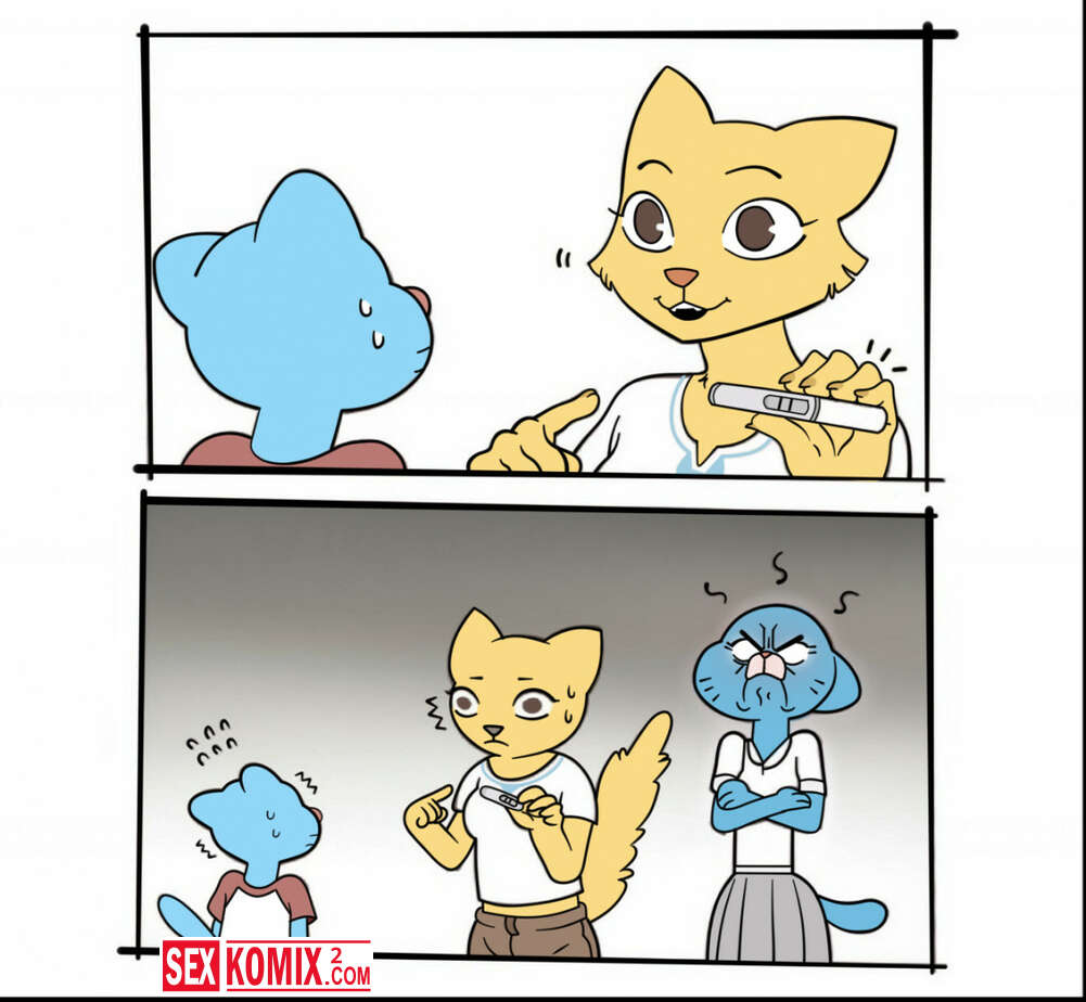 Порно комикс Удивительный мир Гамбола. Катя и Гамбол. Горячая кошечка показа парню ка нужно заниматься сексом и села на его хуй своей киской.