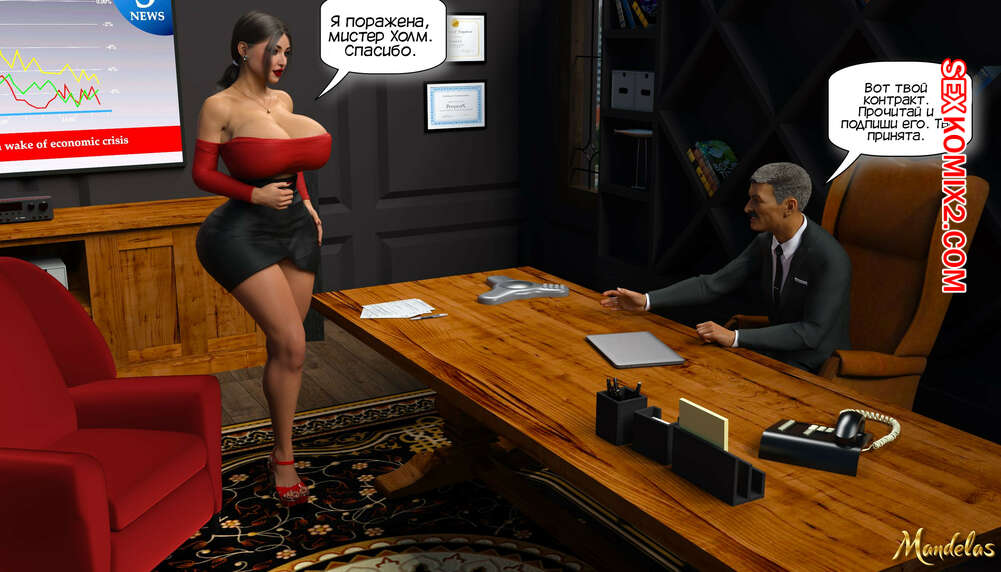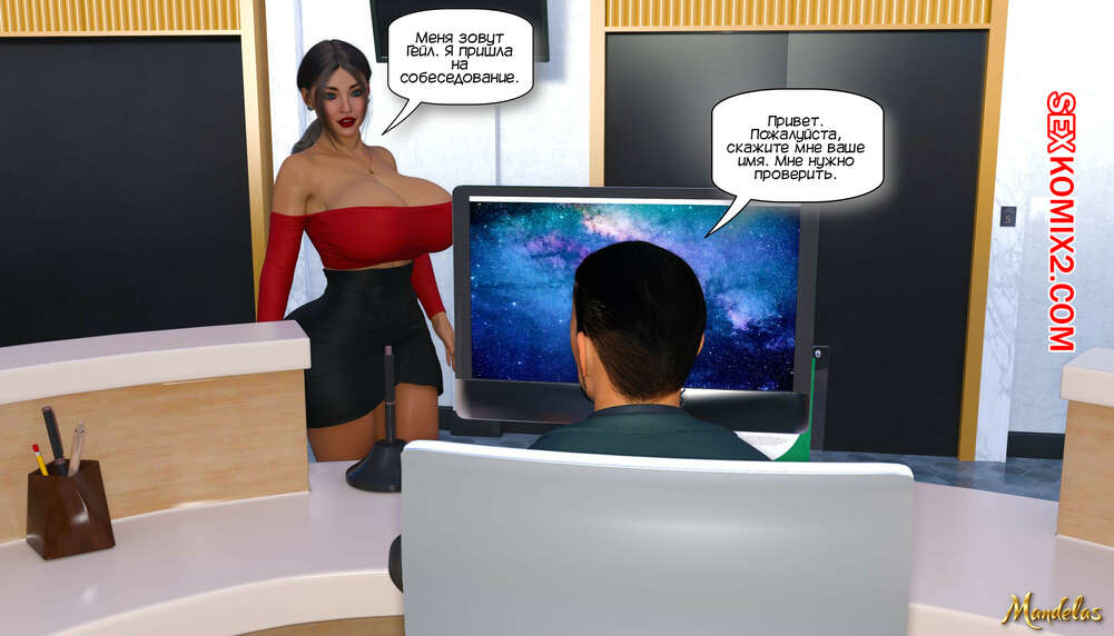 Порно комикс Приключения Гейл. Часть 1. The Adventures of Gail. Mandelas. Горячая милфа Гейл надела сексуальный наряд и отправилась на собеседование в крупную компанию. Ее приняли на работу, после чего красотка отправилась к своему любовнику на работу, чтобы потрахаться.