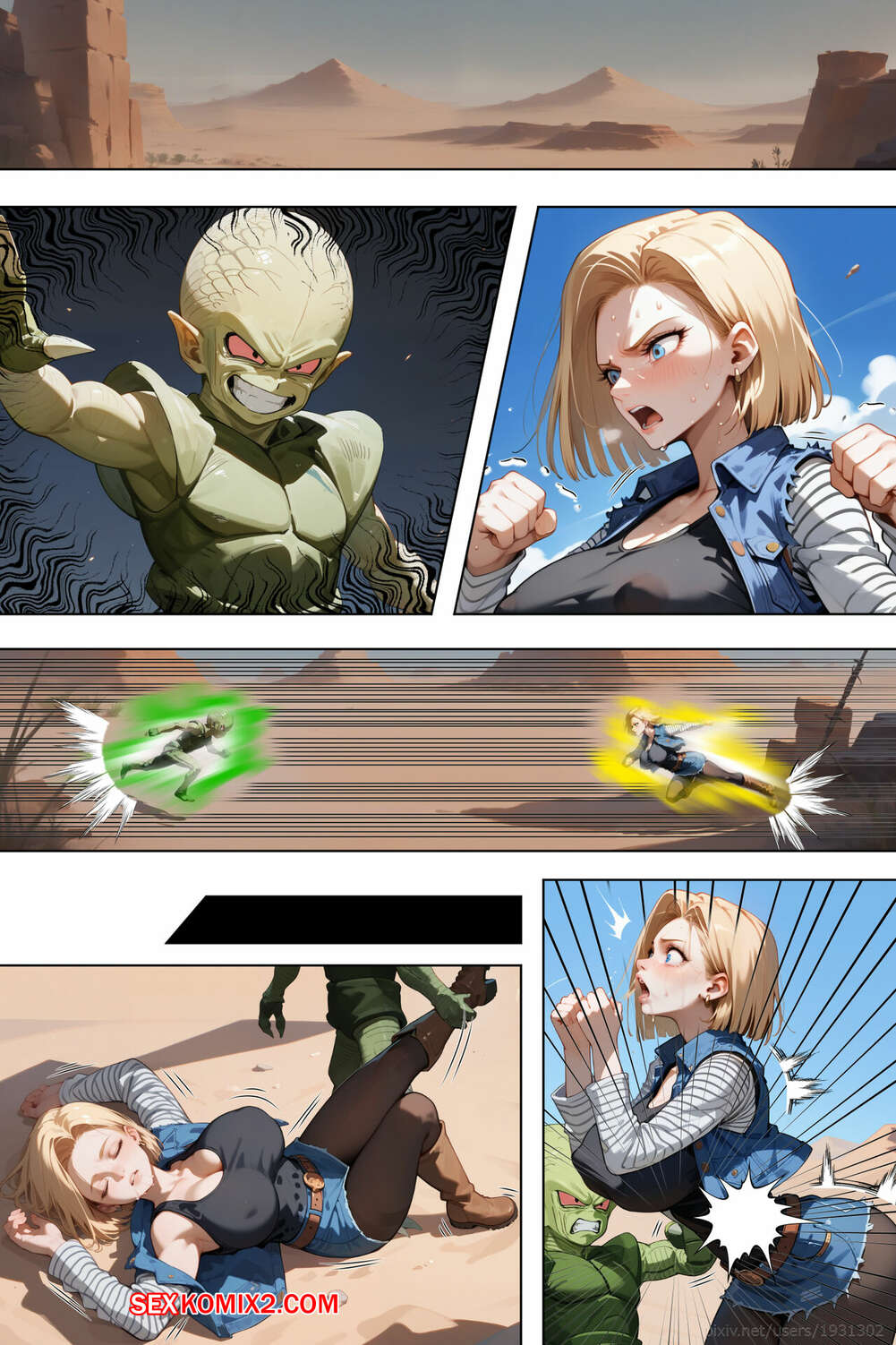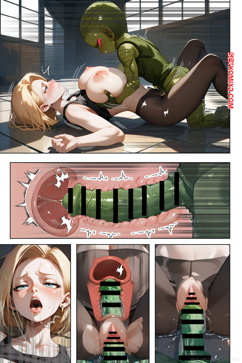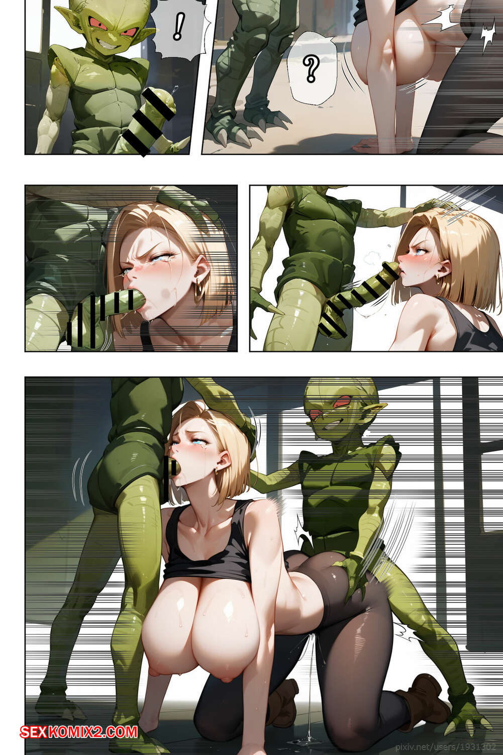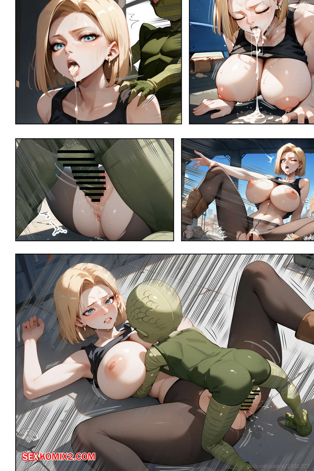 Порно комикс Do Android 18 Birth Saibaimans Child. Dragon Ball Z. ETUS. Два инопланетных парня набросились на горячую блондинку Андроид 18. Они раздели красотку и дали ей отсосать свои большие хуи, после чего выебали ее и заполнили спермой.