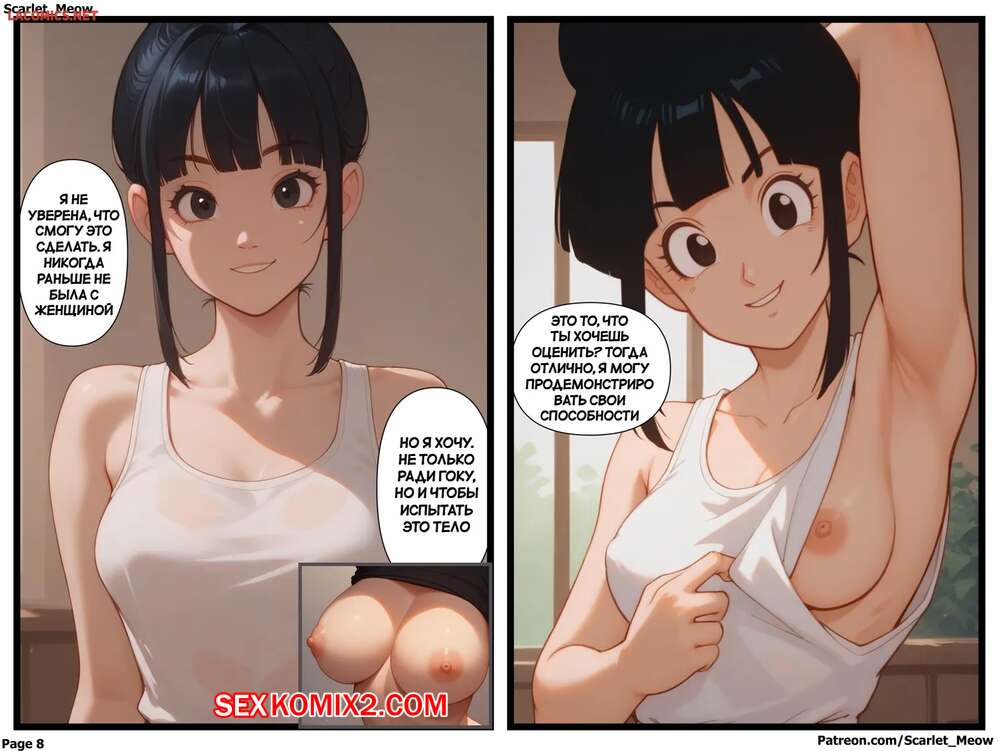 Порно комикс Dragon Ball. Отсутствие Гоку. Часть 4. Gokus Absence. Scarlet Meow Горячие подруги были очень возбуждены и решили повеселиться. Девушки разделись и стали страстно целоваться, после чего отправились в спальню, чтобы заняться лесбийской еблей.