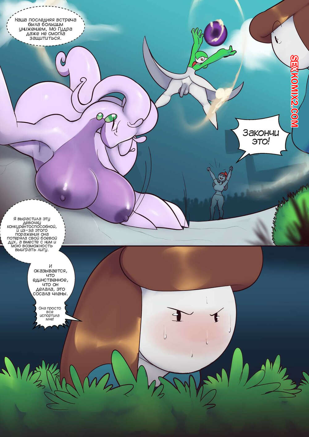Порно комикс Pokemon. Соперничество покемонов. Pokemon Rivals. Asmo18mas. Ребекка с подругой стали следить за Джейден, чтобы выяснить, как ее покемон стал сильнее. Они обнаружили соперницу наедине со своим покемонами, когда они занимались сексом.
