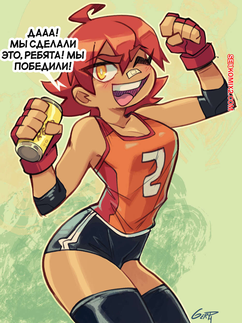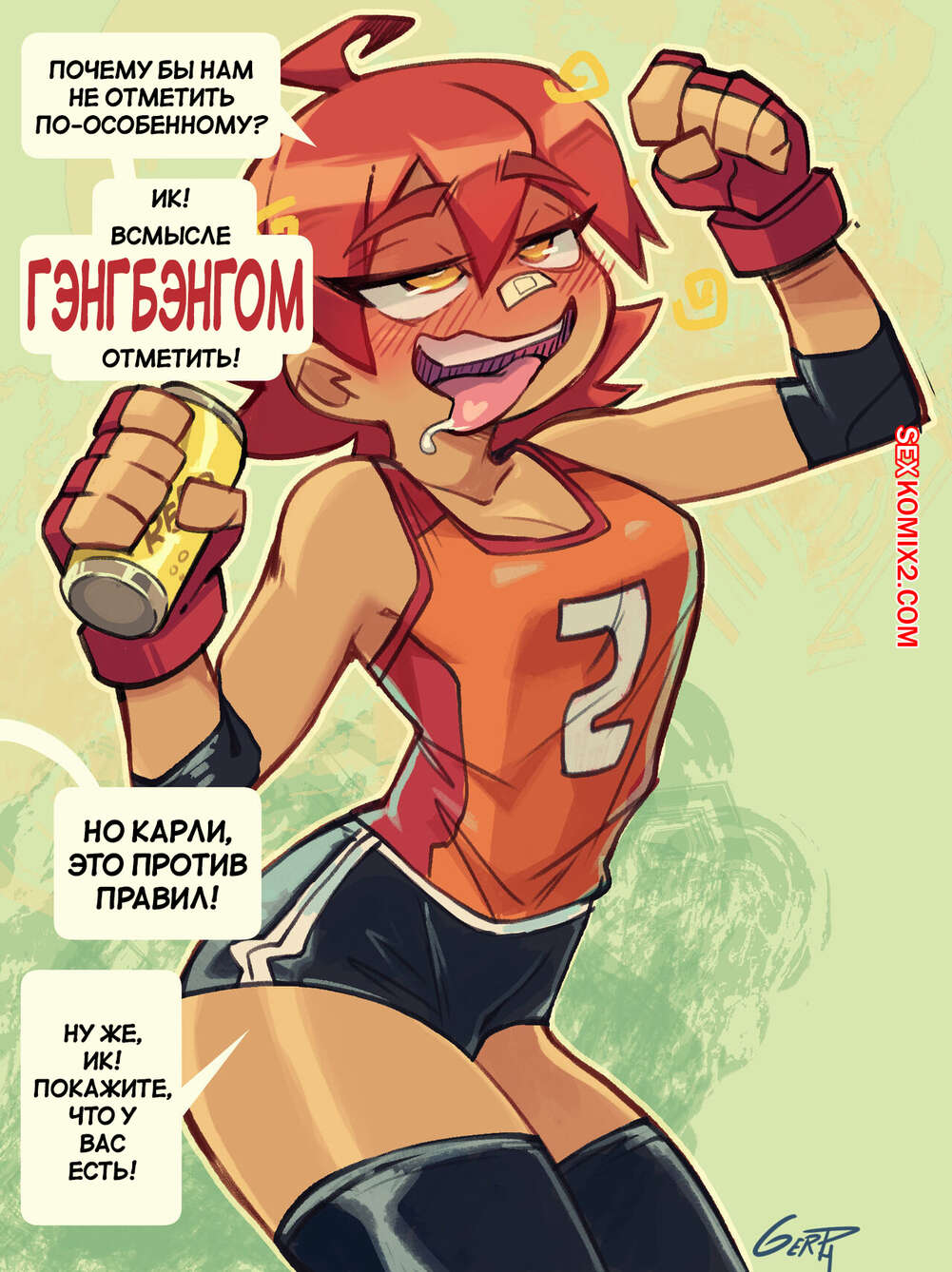 Порно комикс Праздничная вечеринка. Celebration Party. Gerph. Рыжая красотка была очень возбуждена и решила повеселиться со своими дружками. Девушка разделась и отсосала большие хуи парней, после чего дала им себя выебать во все дырочки.