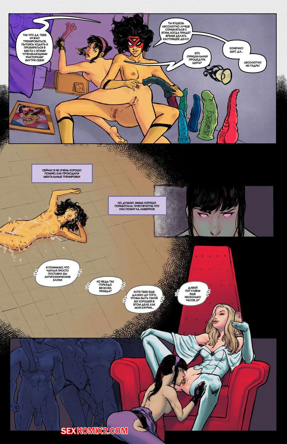 Порно комикс Marvel. Испытания героев. Соколиный глаз. Hero Trials. Hawkeye. Tracy Scops Горячие красотки с великолепными телами очень возбуждены и хотят трахаться. Они раздеваются и сосут большие члены своих дружков, после чего позволяют им трахать себя.