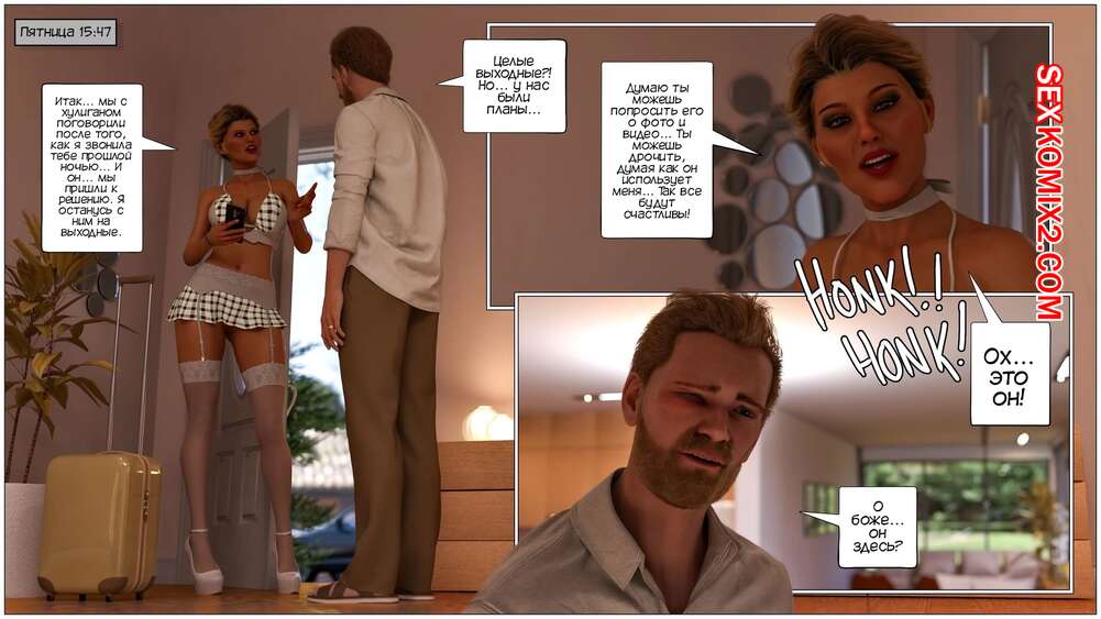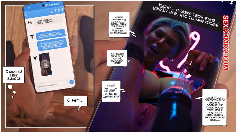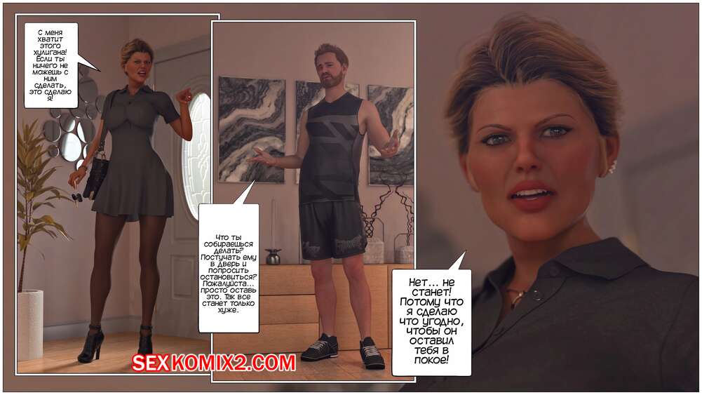 Порно комикс Куколднутый хулиганом. Cuckolded by the Bully. Tab109. Горячая милфа решила вступиться за своего мужа, над которым издевается сын его босса. Красотка отправляется домой к темнокожему парню и трахается с ним, чтобы он оставил ее мужа в покое.
