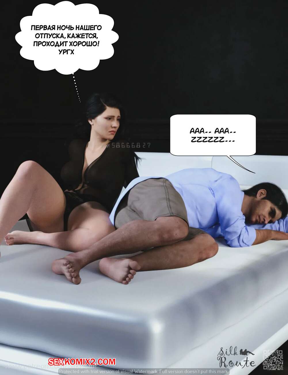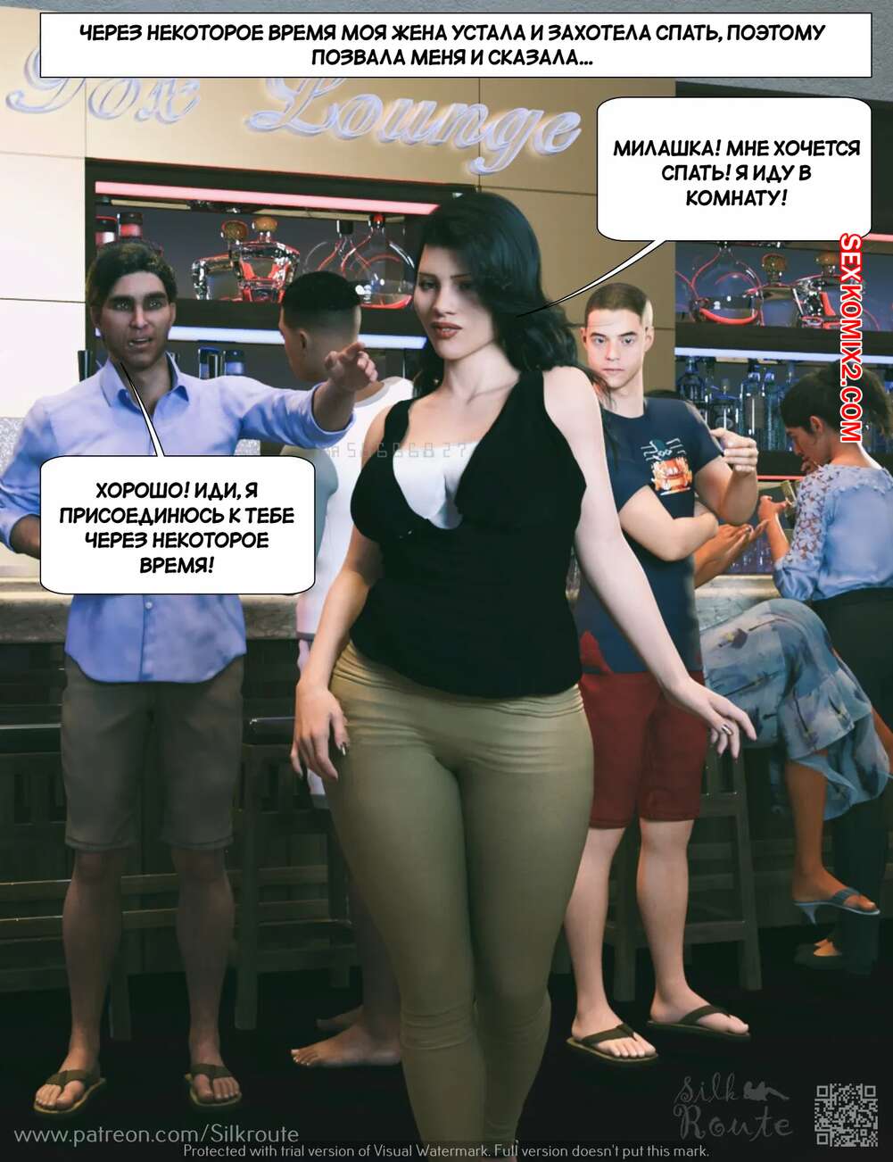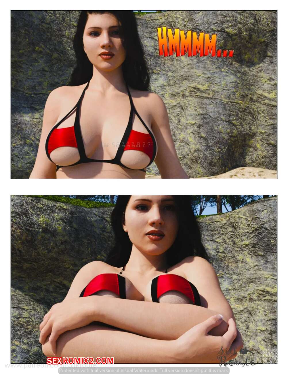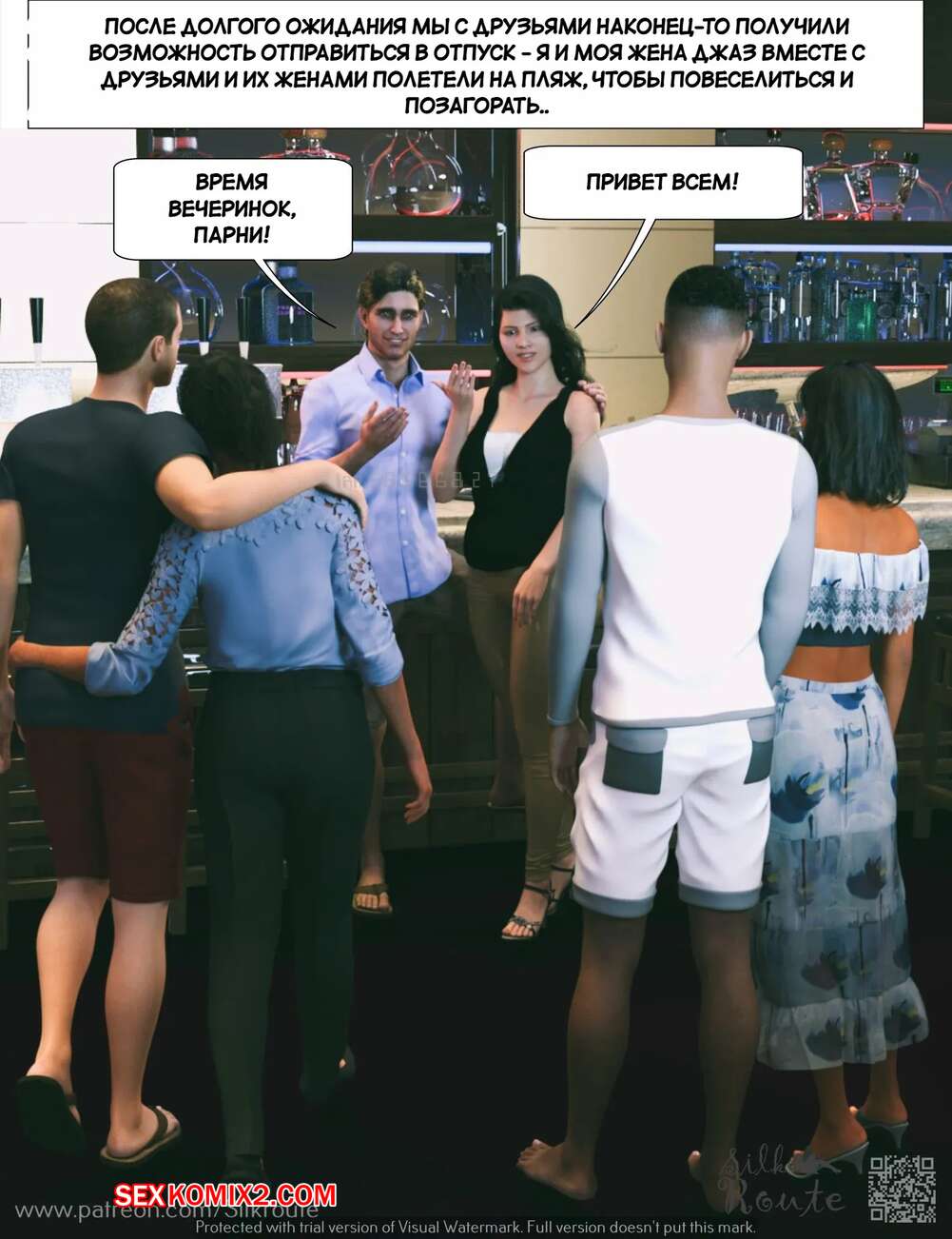 Порно комикс Отпуск. Часть 1. Vacation. Silk Route, Ira Raman Горячая милфа с шикарным телом приехала с мужем в отпуск на курорт. Во время отдыха на пляже, красотка привлекла внимание нескольких парней и решили с ними повеселиться, начав сосать их члены.