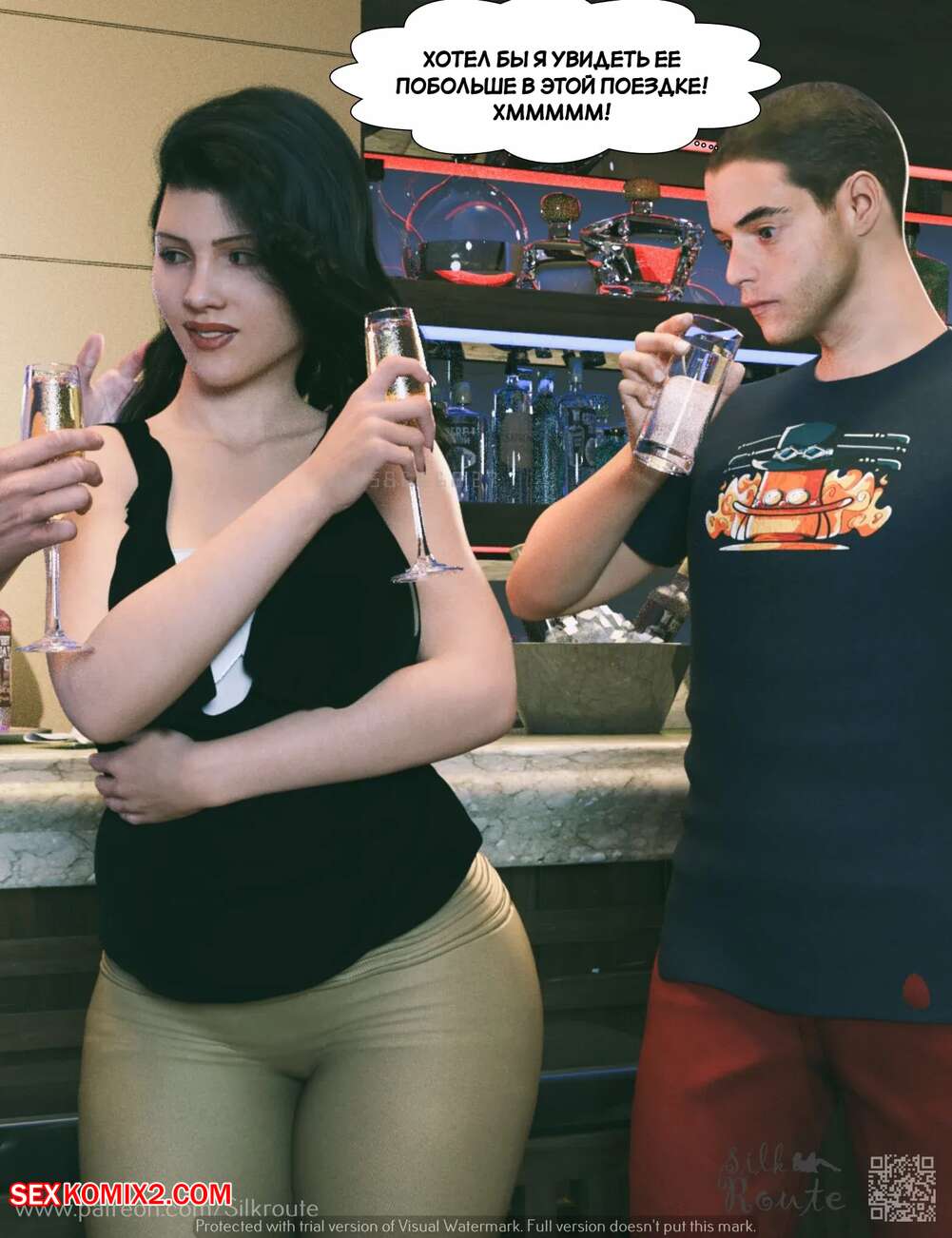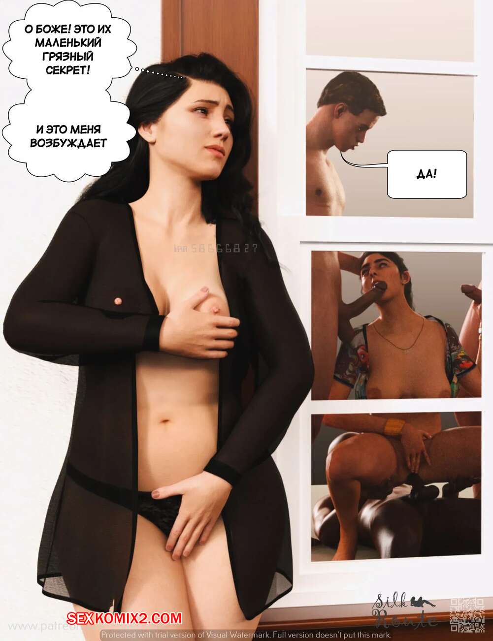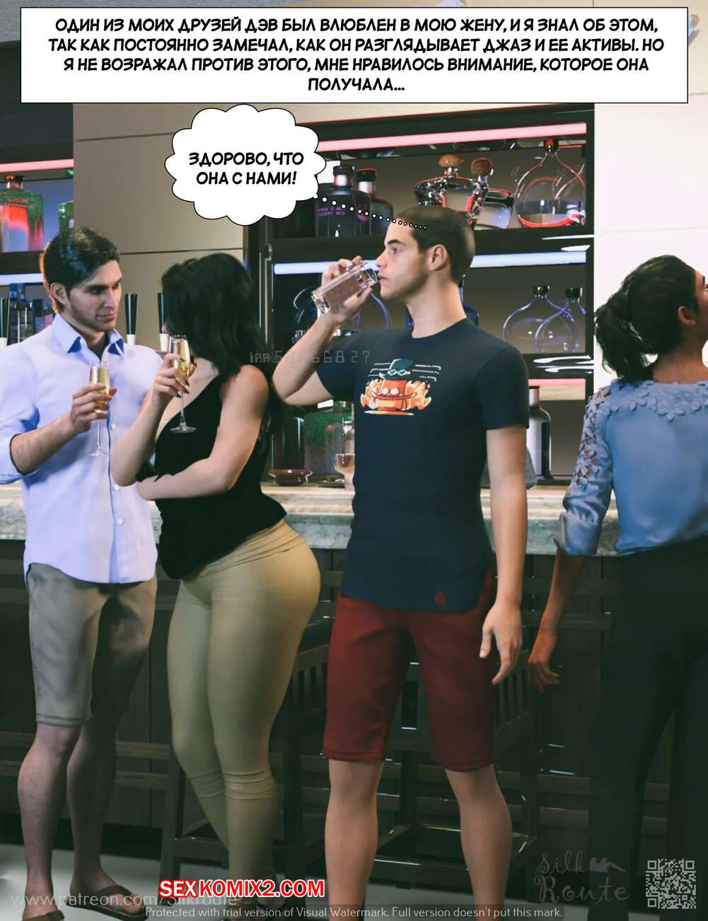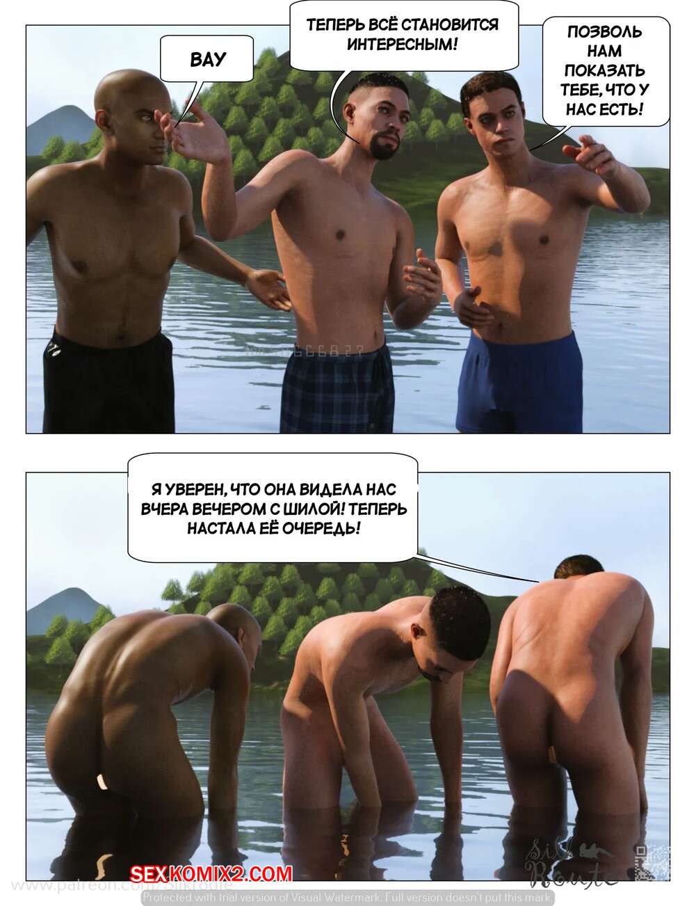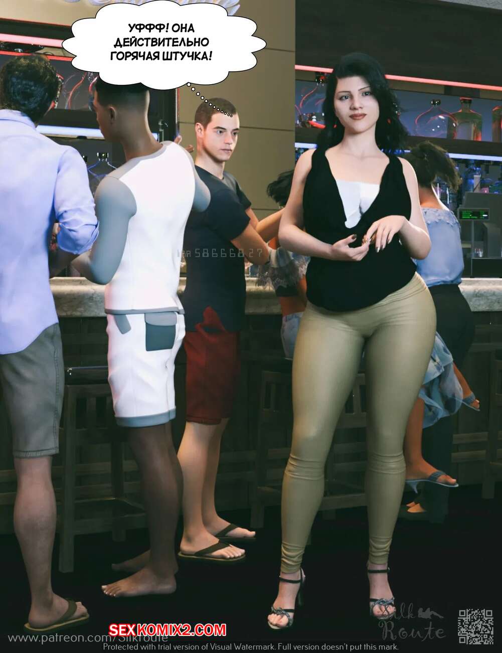 Порно комикс Отпуск. Часть 1. Vacation. Silk Route, Ira Raman Горячая милфа с шикарным телом приехала с мужем в отпуск на курорт. Во время отдыха на пляже, красотка привлекла внимание нескольких парней и решили с ними повеселиться, начав сосать их члены.