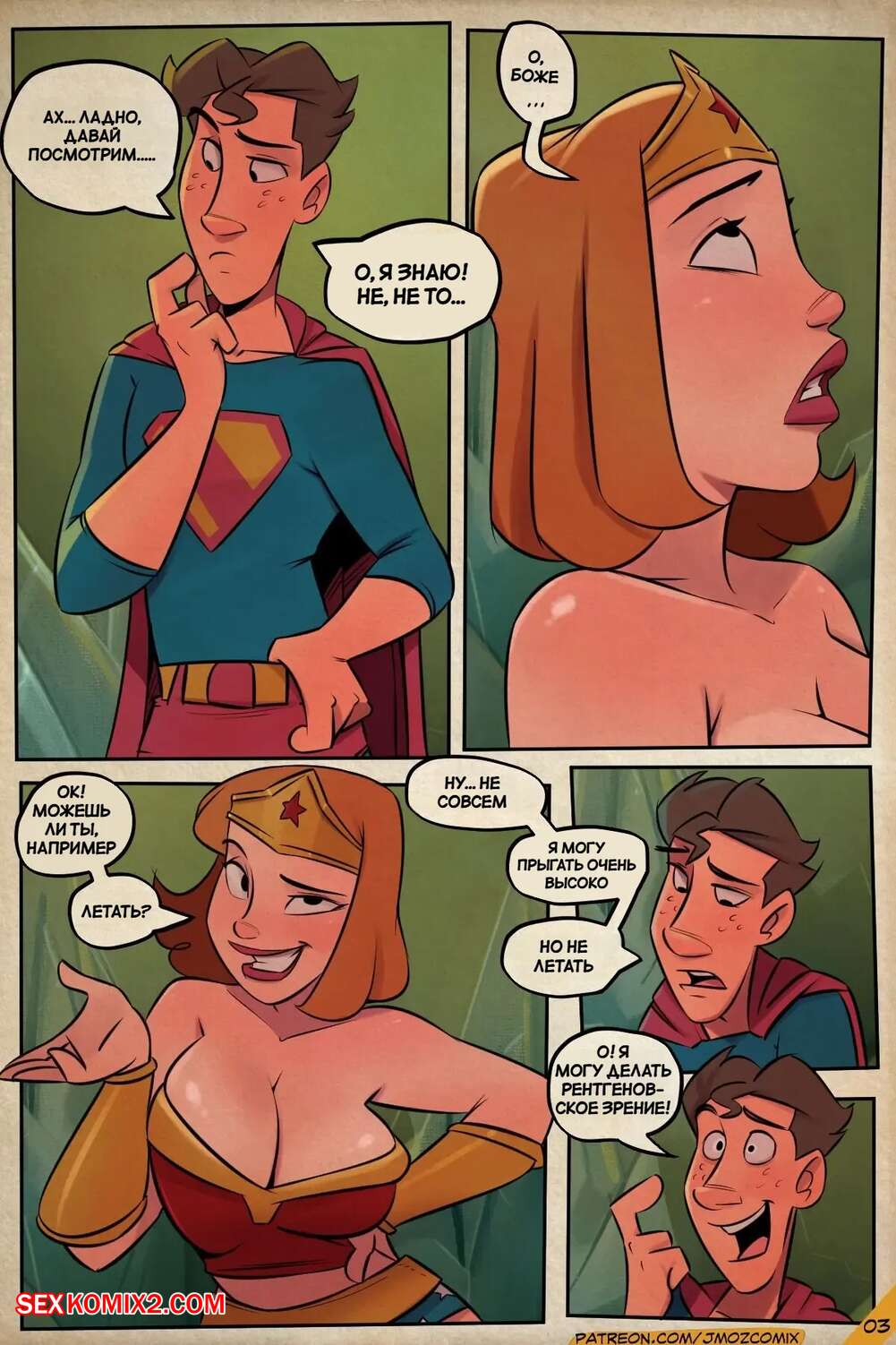 Порно комикс Чудо мамочка и Супербой. Wonder Momma vs Superboy. Jmoz Comix Горячая милфа осталась наедине со своим сыном и решила повеелиться. Красотка разделась и отсосала большой хуй парня, после чего дала ему выебать себя во все дырочки.