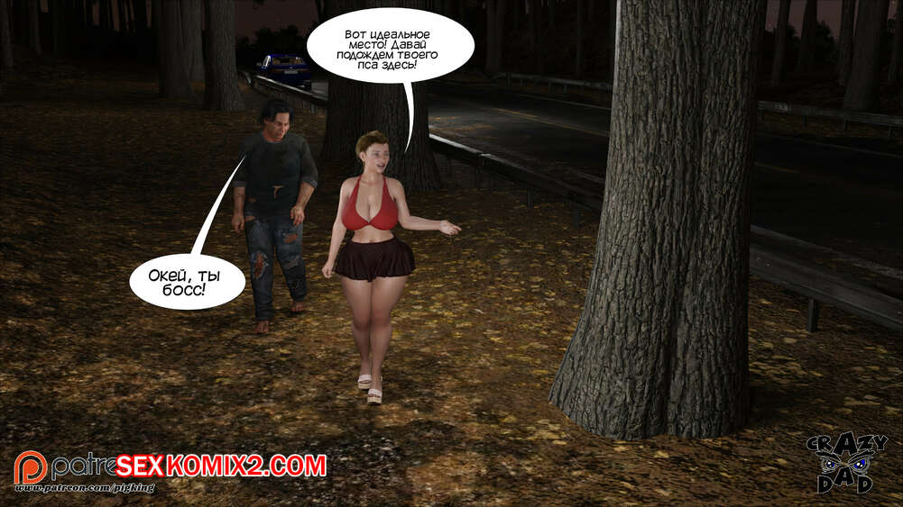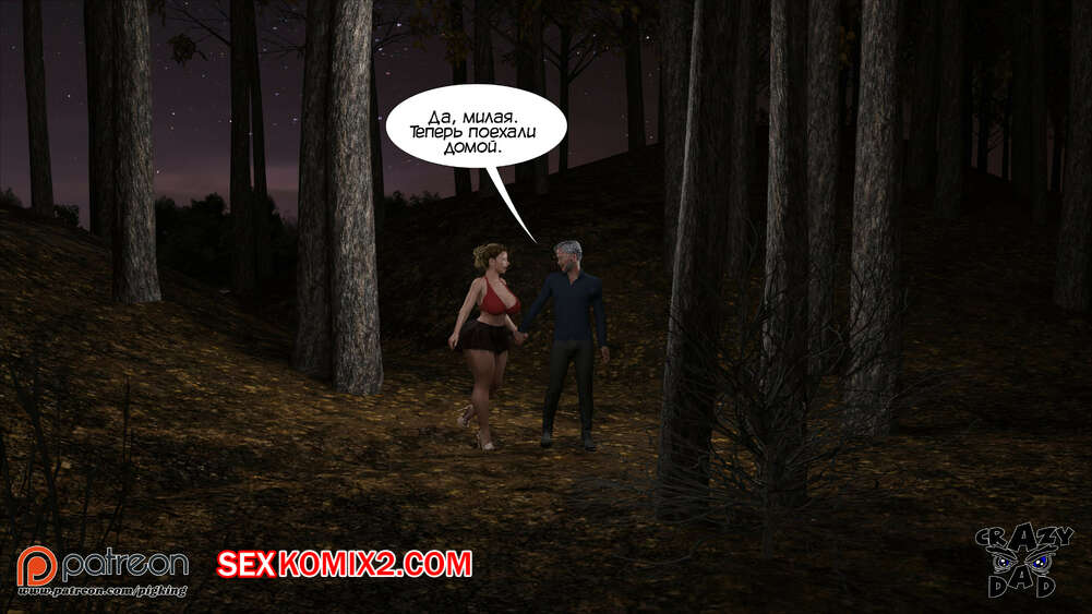 Порно комикс Свекр дома. Часть 40. Father In Law At Home. CrazyDad3D Горячая милфа Бренда наслаждается членом своего отца в лесу, но им пора возвращаться домой. Перед тем, как сесть в машину, красотка встречает бездомного парня и решает с ним повеселиться.