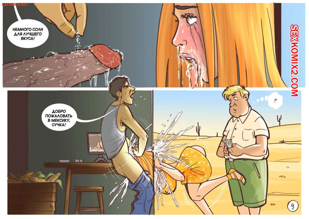 Порно комикс Добро пожаловать в Мексику. Welcome Mexico Горячая милфа приехала со своей семьей в Мексику и ее сын был очень голоден. Красотка пошла искать сыну еду, но в итоге нарвалась на местного старика, который выебал девушку в ротик и кончил в него.