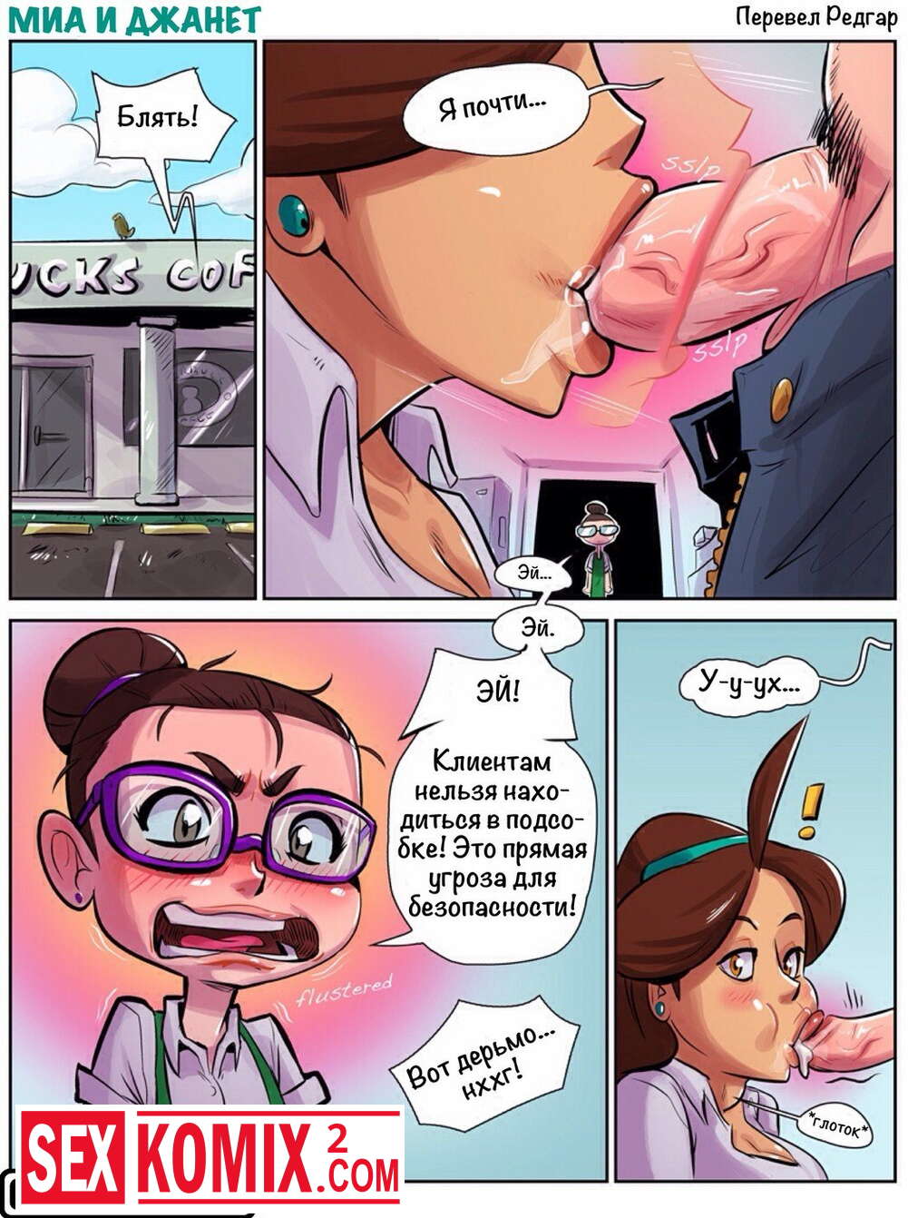 Порно комикс Миа и Джанет. Две подруги наливают кофе, но в кафе нет посетителей и у них появилась минутка развлечься в подсобном помещении.