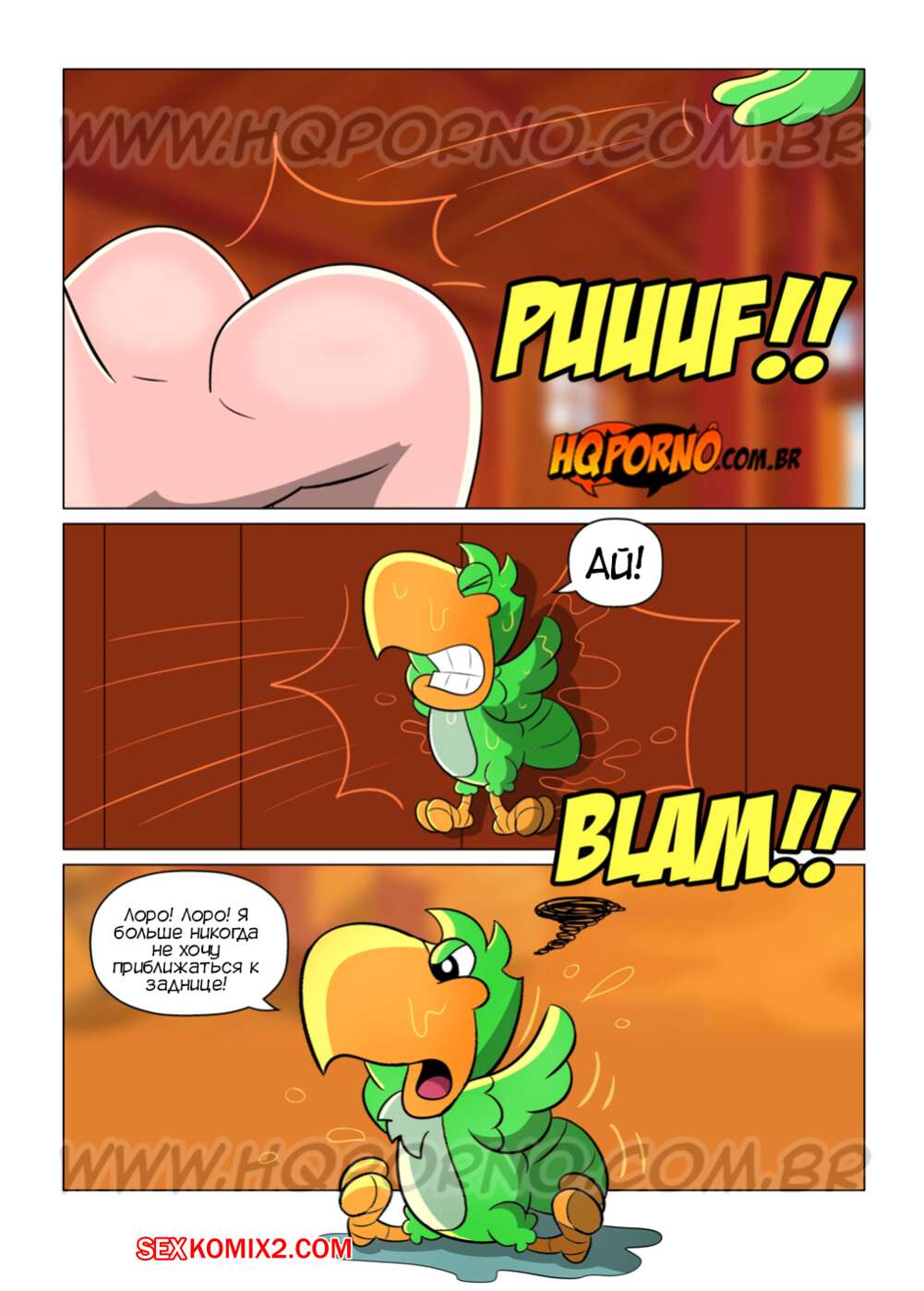 Порно комикс Фелисбинос. Часть 12. Os Felisbinos. HQporno В заднице блондинки застрял попугай и его никак не получается вытащить. Мадалена и Пьетро отправились за помощью к сеньору Нерсо, чтобы с помощью члена наконец избавиться от птицы в узкой дырочке девушки.