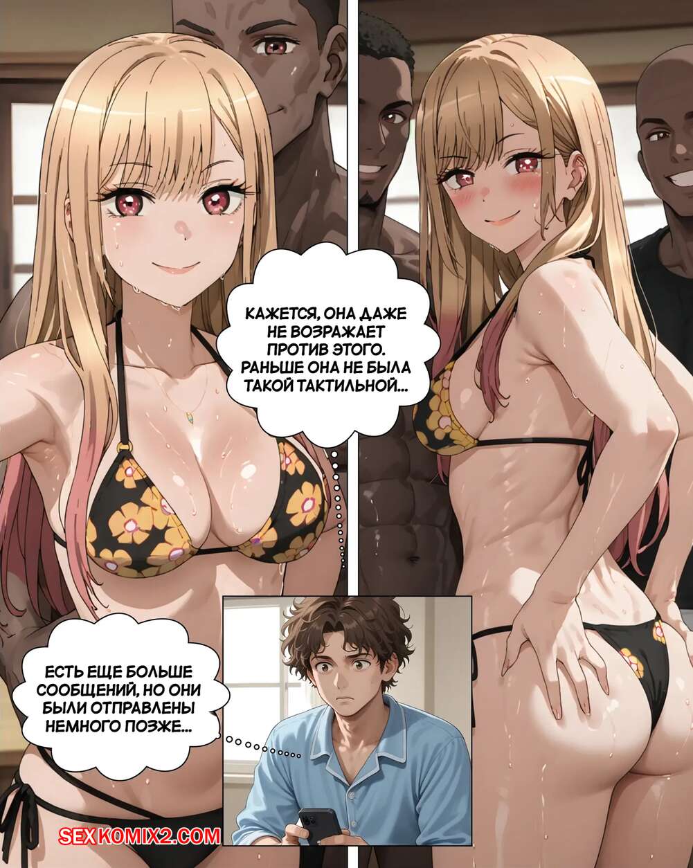Порно комикс Девушка в отпуске. Girlfriend On Vacation У парня много работы, поэтому он согласился отпустить свою девушку одну в отпуск. Там красотка привлекла внимание темнокожих парней, которые соблазнили девушки черными членами и выебали ее.