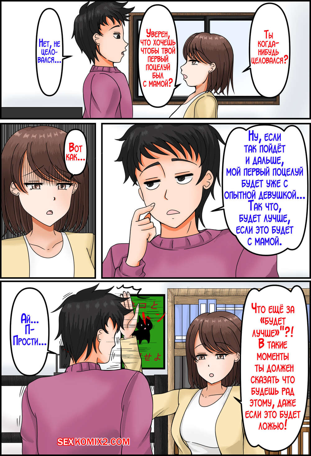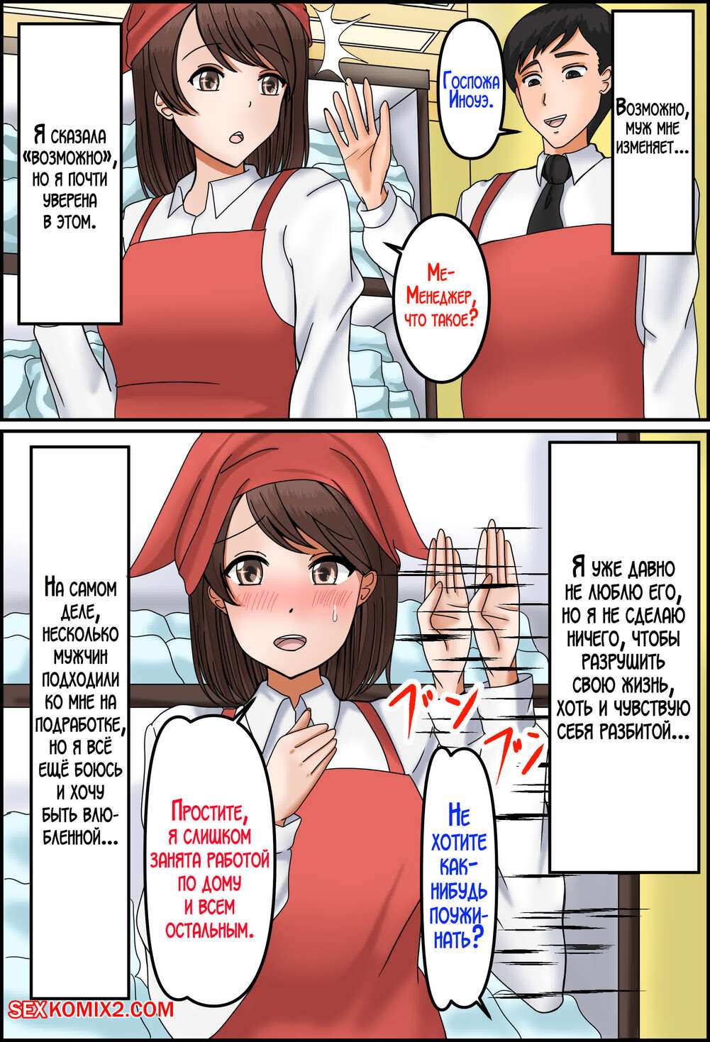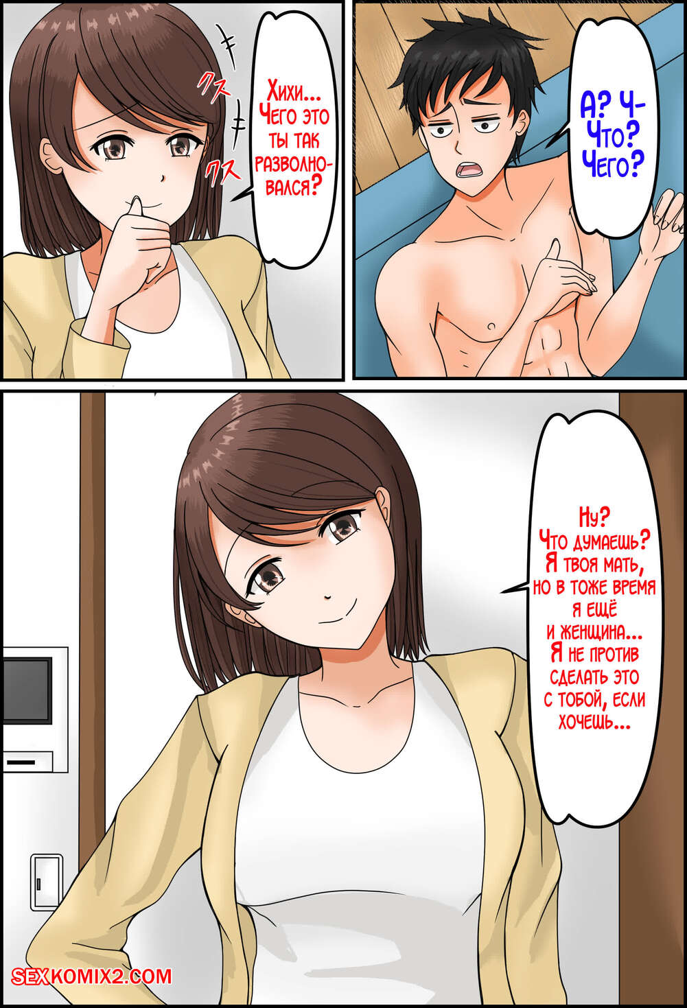 Порно комикс Изменила мужу с нашим сыном. Mato ya Горячая милфа подозревает своего мужа в измене и решила ему отомстить. Красотка спалила сына за дрочкой и решила, что это отличный шанс нанести мужу ответный удар.