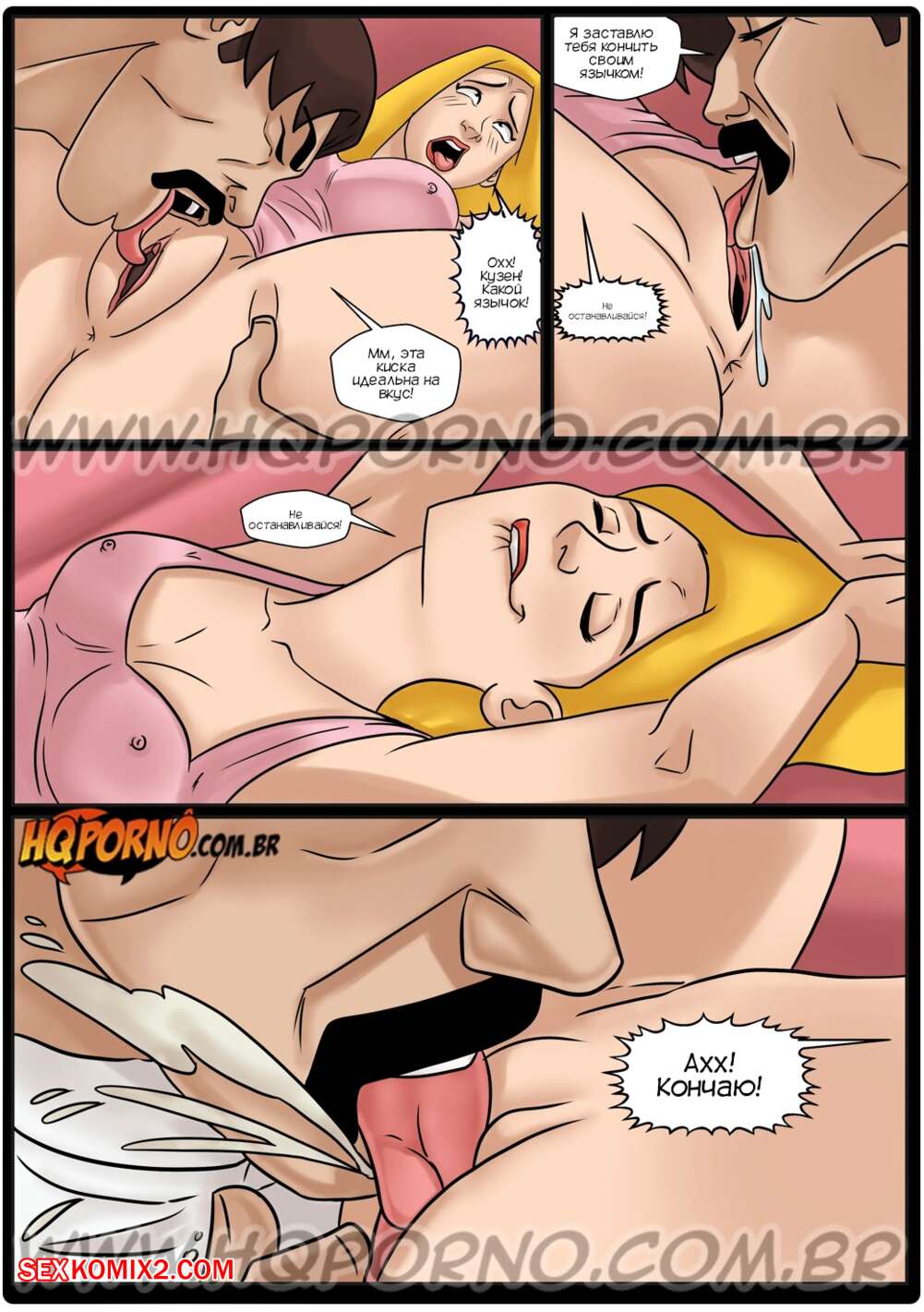 Порно комикс Рикардао Таларико. Часть 3. HQPorno Вагнао изменил своей жене и она выгнала его из дома. Парень обратился за помощью к Рикардао, чтобы он поговорил со своей кузиной и все исправил. Парень отправился домой к блондиночке и выебал ее задницу, чтобы девушка отомстила мужу и простила его.
