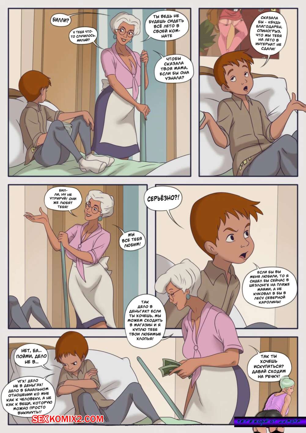 Порно комикс Время завтрака. Lunch Time. Milftoon Сисястая бабуля была очень возбуждена и решила повеселиться со своим внуком. Красотка разделась и раздвинула ножки перед парнем, после чего дала ему себя выебать.