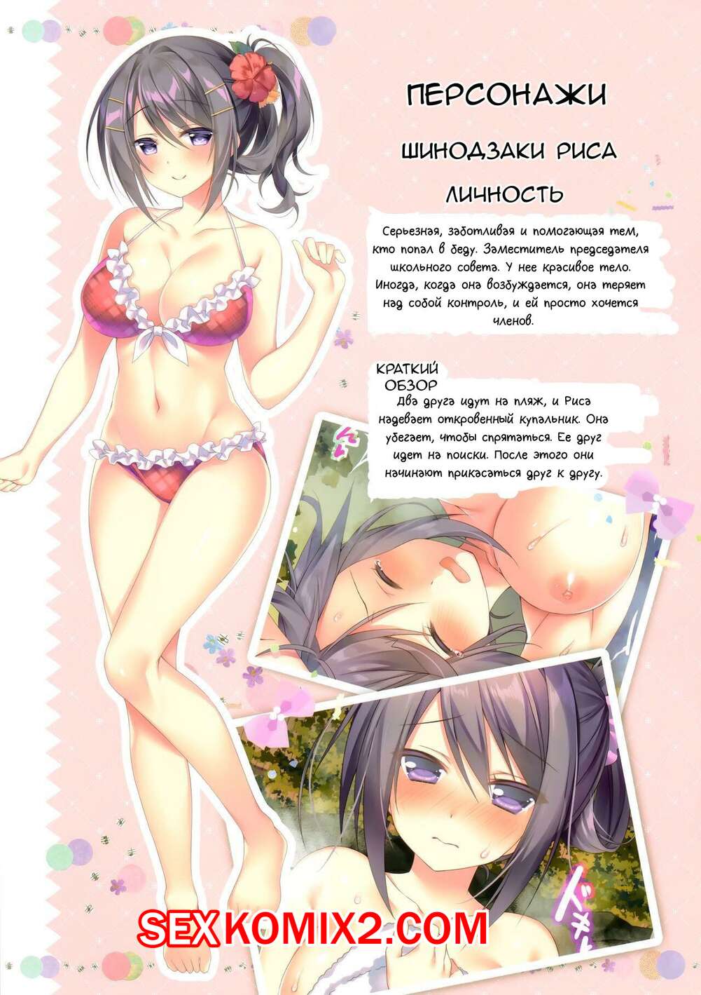 Порно комикс Сексуальные каникулы Рисы Шинодзаки. Sorai Shinya Горячая брюнетка отправилась на пляж и решила повеселиться со своим дружком. Красотка разделась и возбудила парня шикарным телом, после чего дала ему себя выебать.