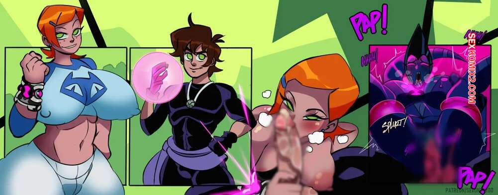 Порно комикс Бен 10. Инопланетная силая. Alien Force. Sevonteroo Горячие красотки без ума от большого члена Бена. Девушки раздеваются и раздвигаются ножки перед парнем, после чего дают ему себя хорошенько выебать, получая огромное удовольствие.