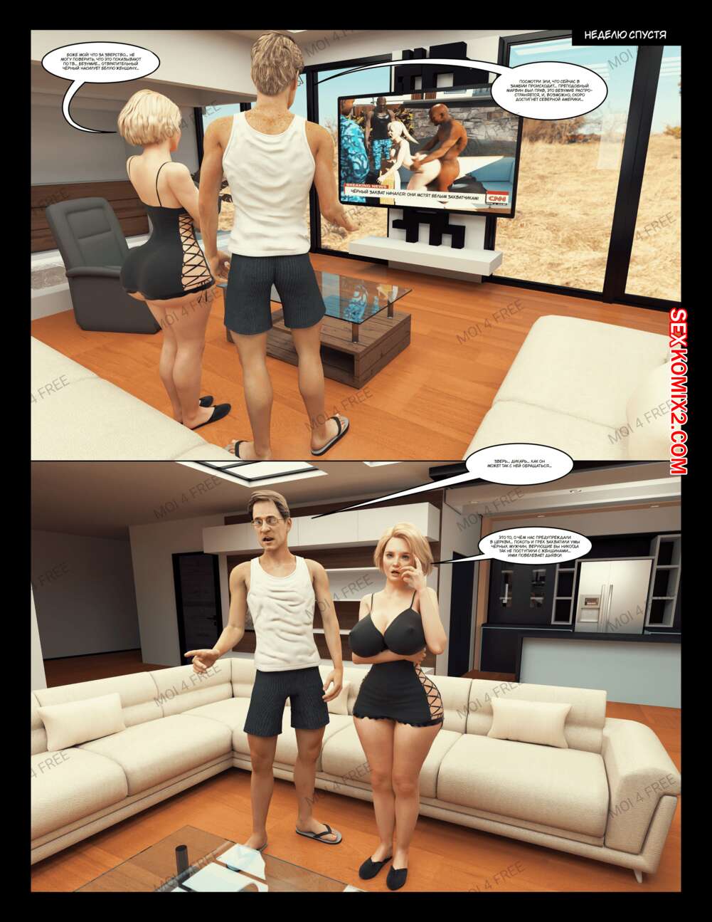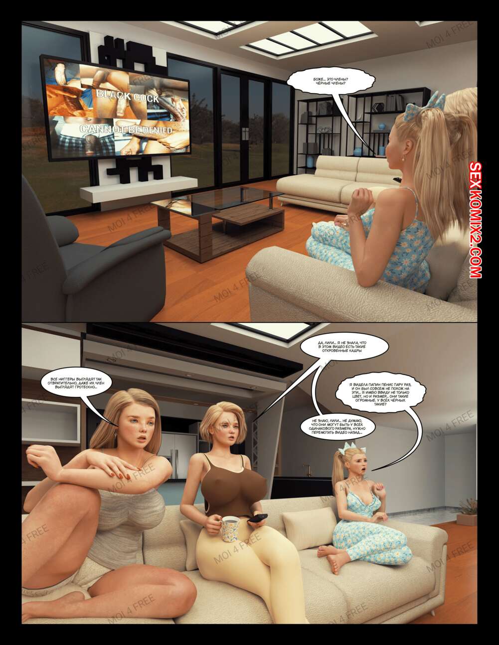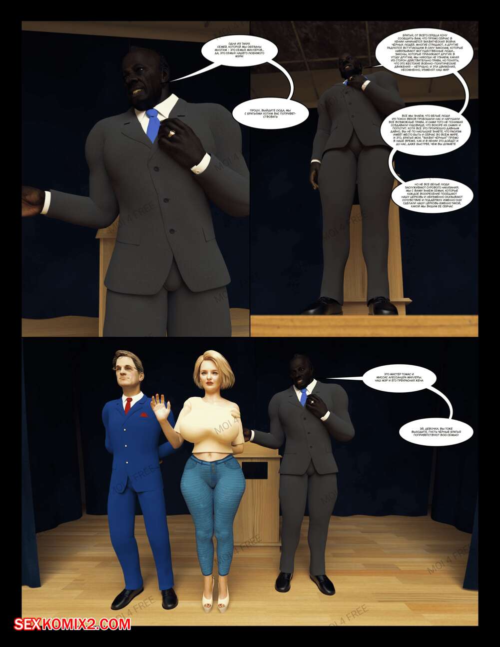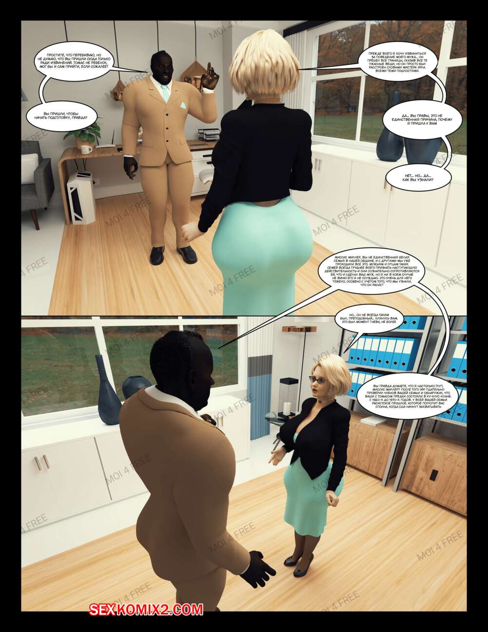 Порно комикс The Millers. Часть 1. Moiarte Темнокожие парни соблазняют горячих милф своими большими хуями. Они раздевают девушек и дают им отсосать у себя, после чего хорошенько ебут девушек, доставляя им удовольствие.