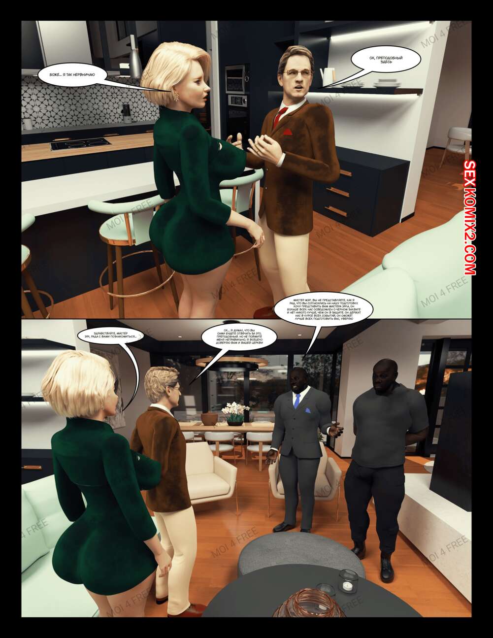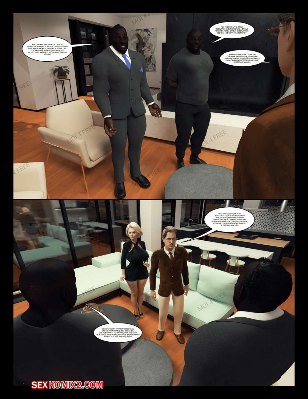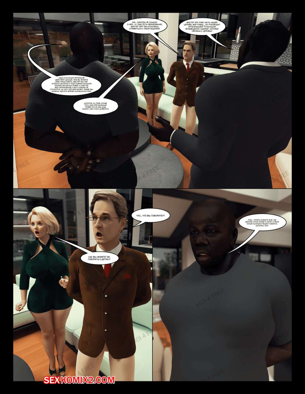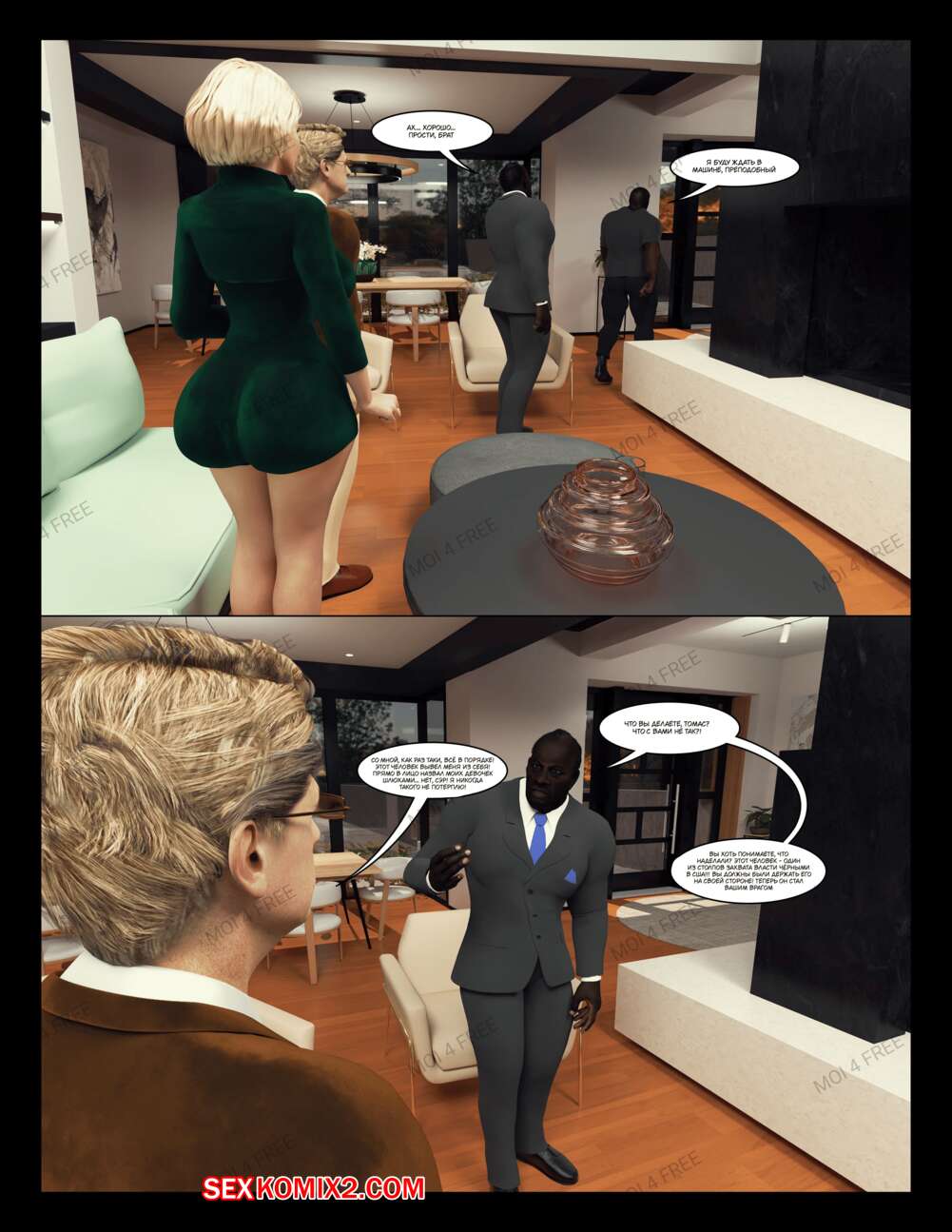 Порно комикс The Millers. Часть 1. Moiarte Темнокожие парни соблазняют горячих милф своими большими хуями. Они раздевают девушек и дают им отсосать у себя, после чего хорошенько ебут девушек, доставляя им удовольствие.