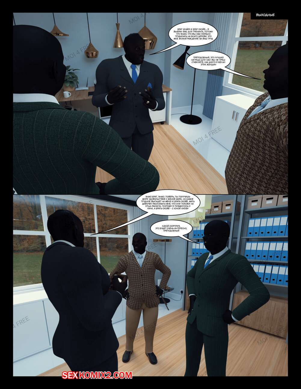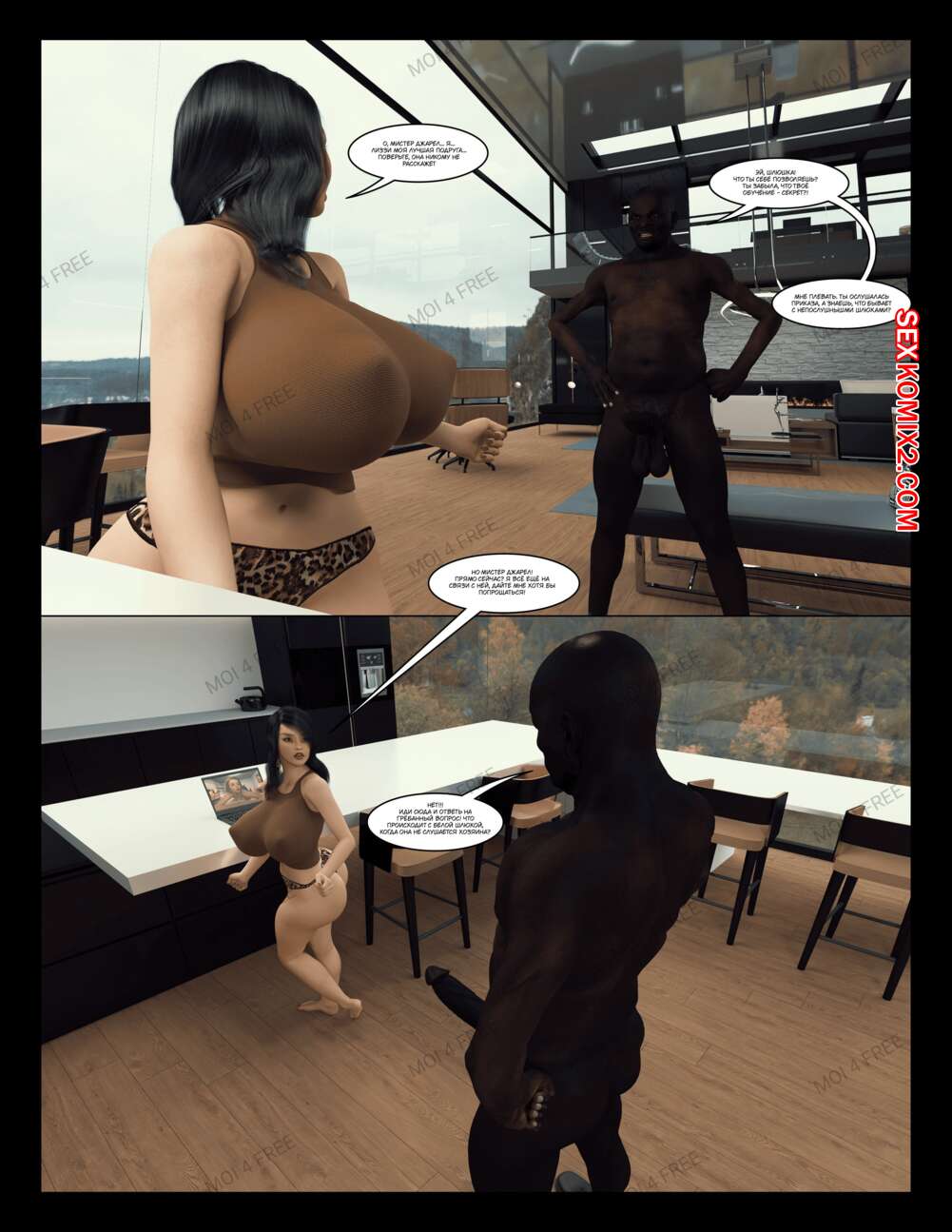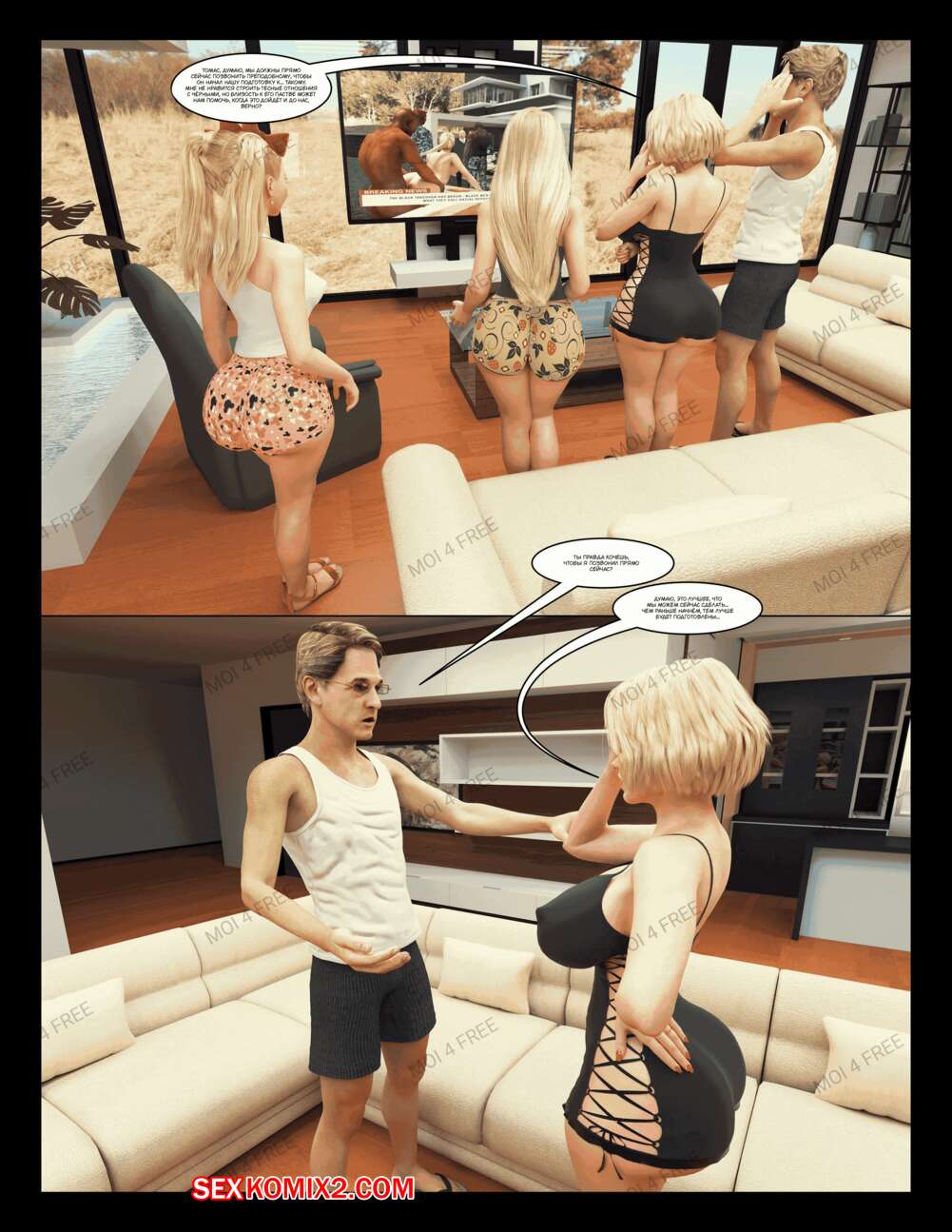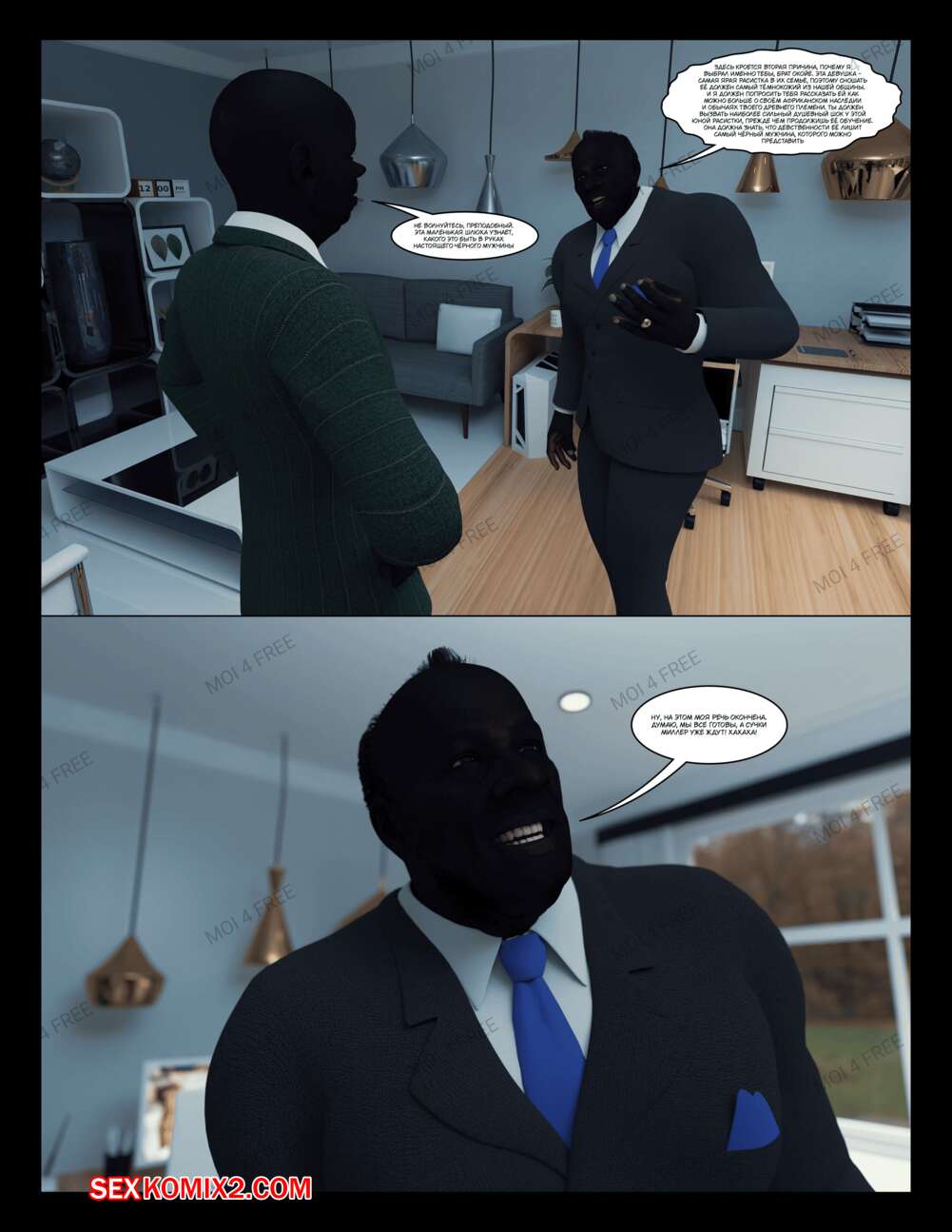 Порно комикс The Millers. Часть 1. Moiarte Темнокожие парни соблазняют горячих милф своими большими хуями. Они раздевают девушек и дают им отсосать у себя, после чего хорошенько ебут девушек, доставляя им удовольствие.