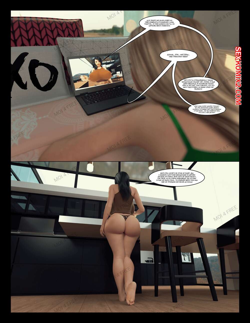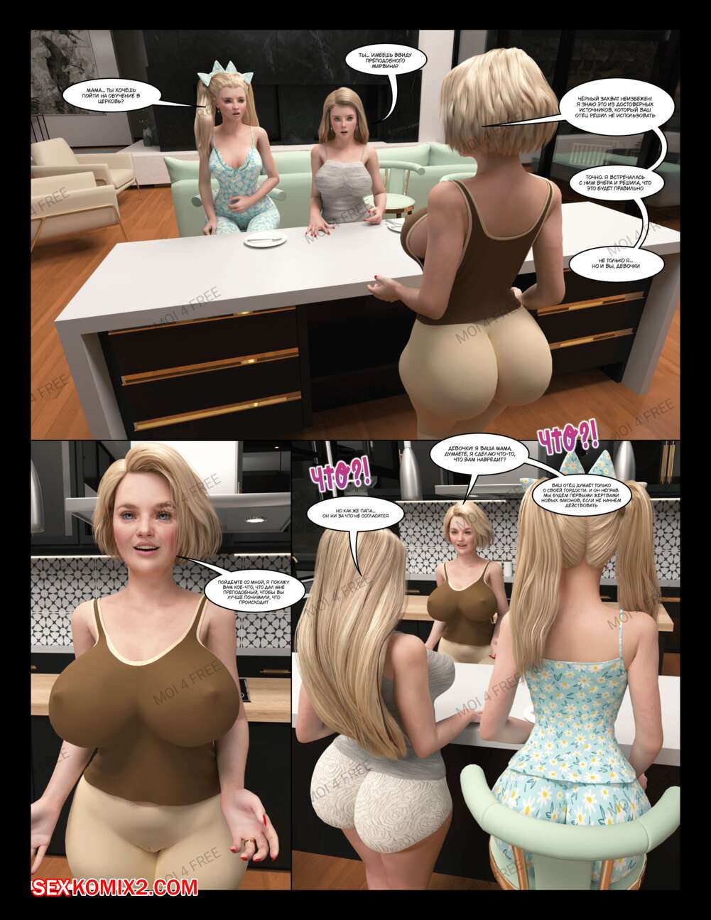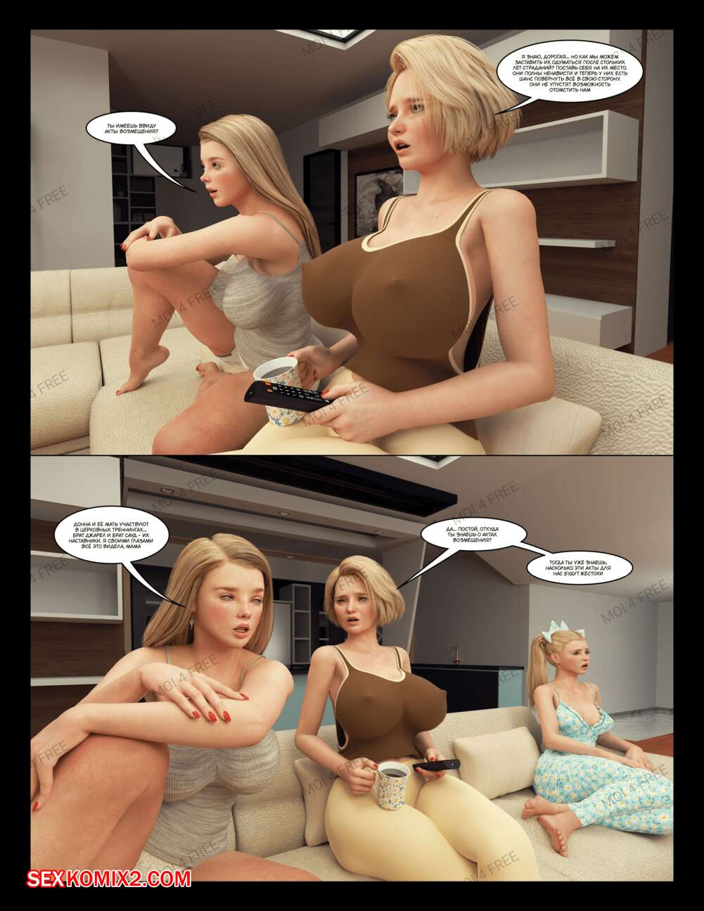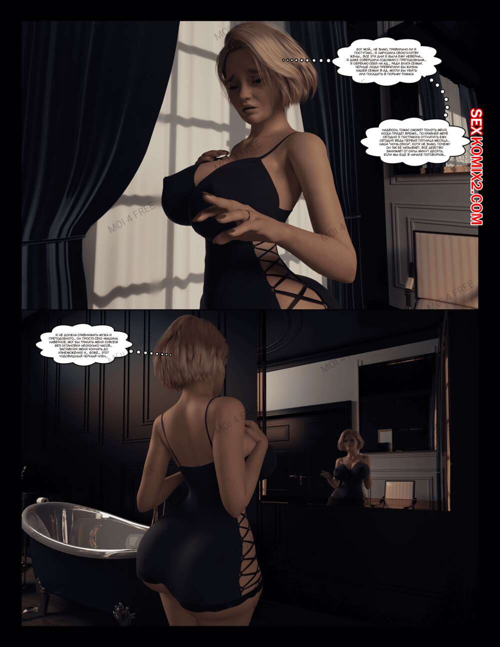 Порно комикс The Millers. Часть 1. Moiarte Темнокожие парни соблазняют горячих милф своими большими хуями. Они раздевают девушек и дают им отсосать у себя, после чего хорошенько ебут девушек, доставляя им удовольствие.